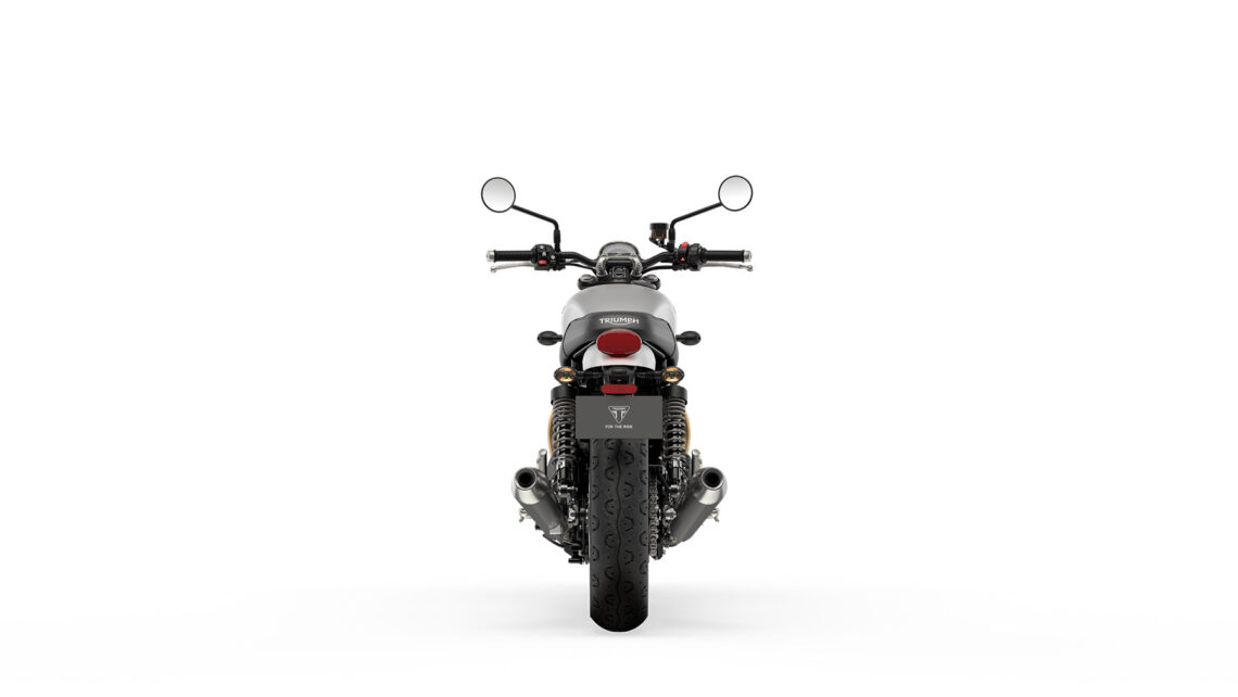 Todos los ojos se nos van primero al esquema de pintura único de la Triumph Street Twin EC1, con el depósito en un esquema de color bitono en grises ‘Matt Aluminium Silver’ y ‘Matt Silver Ice’ con unas líneas pintadas a mano además de unos gráficos exclusivos EC1 y el escudo triangular de Triumph. Los paneles laterales también lucen el mismo color Matt Silver Ice y un nuevo gráfico ‘Street Twin Limited Edition’, mientras que los guardabarros delantero y trasero son de color ‘Matt Aluminium Silver’. En este mismo color gris puedes tener la pantalla disponible como accesorio que termina por ser un toque final a una imagen sorprendente. El plateado general de la Triumph Street Twin EC1 se refuerza con el contraste conseguido con las llantas negras de 10 brazos, la carcasa negra del faro delantero, los retrovisores acabados en negro y las tapas del motor negras.