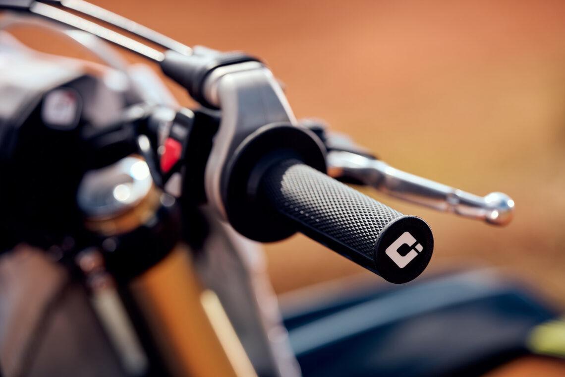 La moto tiene un aspecto muy estrecho gracias al diseño del motor. Sus tapas son de magnesio (que reducen considerablemente su peso), el embrague, con campana y discos de acero, garantiza una gran durabilidad. Otro detalle de calidad son las manetas, el manillar ODI RC4 fabricado en aleación 2014-T6 y anodizado y puños Half Waffle.