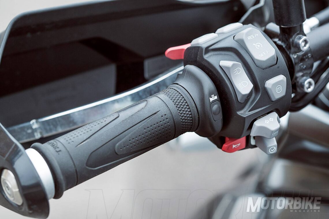 La XRt es la única que tiene 5 modos de conducción. Por otro lado, añade asientos calefactables, tanto para el conductor como para el pasajero. Para mejorar su protección, se ha añadido un protector de aluminio en el radiador y un cubre-cárter de plástico. Las luces delanteras son totalmente LED a los que hay que añadirles los supletorios antiniebla también LED. Otro toque de sofisticación está en los mandos del manillar retroiluminados.