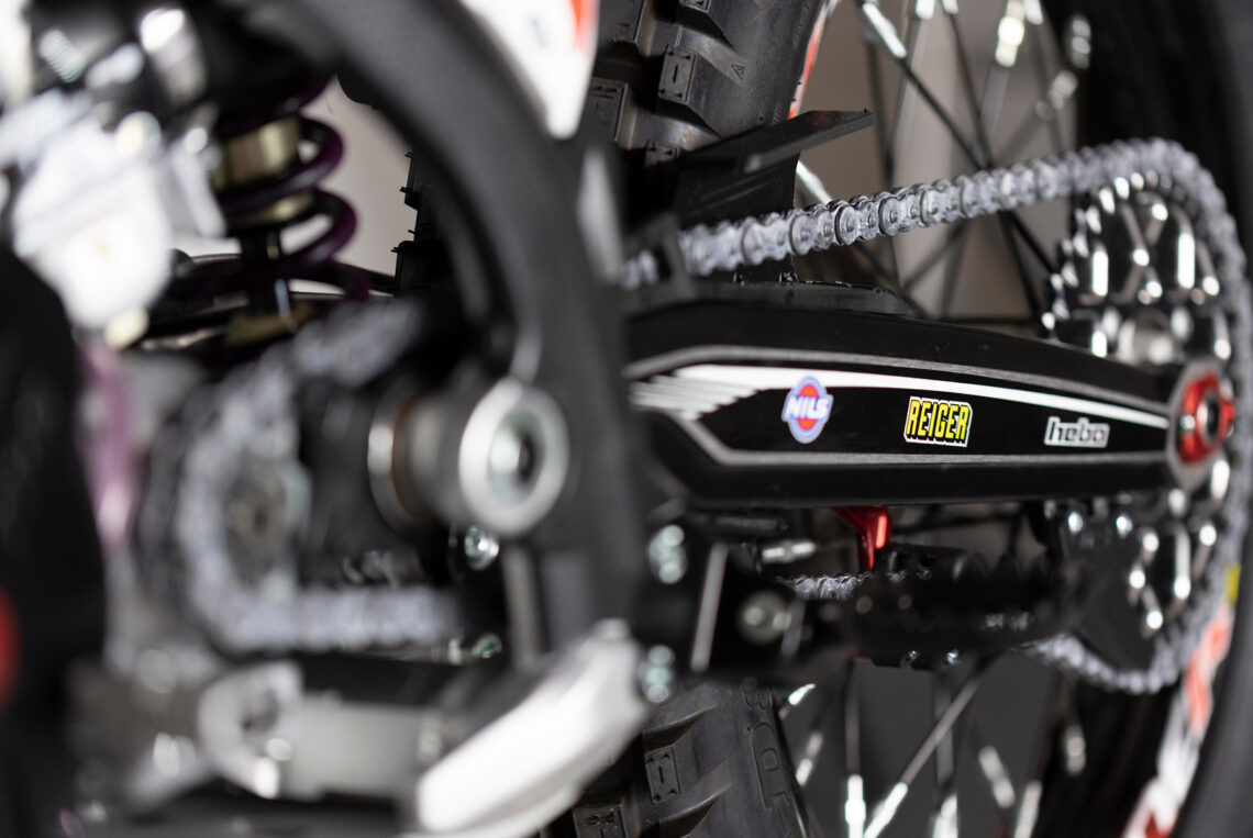 Se compone de un motor con cárter de inyección de aluminio, amortiguador trasero Reiger de una vía, carburador Keihin PWK de 28mm y la suspensión delantera TECH de aluminio. La evolución de este año incorpora un cubre-cárter nuevo, una nueva instalación eléctrica para el sensor de temperatura, nuevo CDI con lector de sensor de temperatura, nuevo tirador del estárter y volante magnético con una nueva configuración que aumenta el par en bajas y ofrece una entrega más lineal.