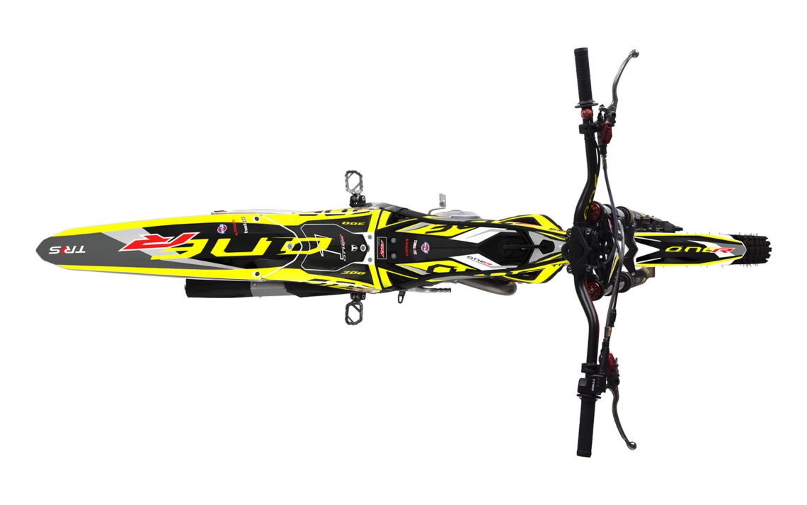 La TRRS One R está disponible con arranque a pedal en la cilindrada de 125 cc mientras que las de 250 y 300 cc cuentan con pedal y también arranque eléctrico.