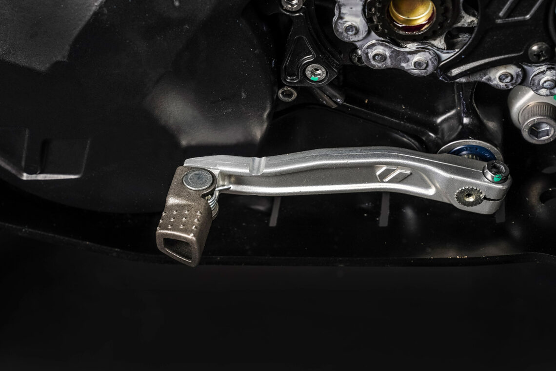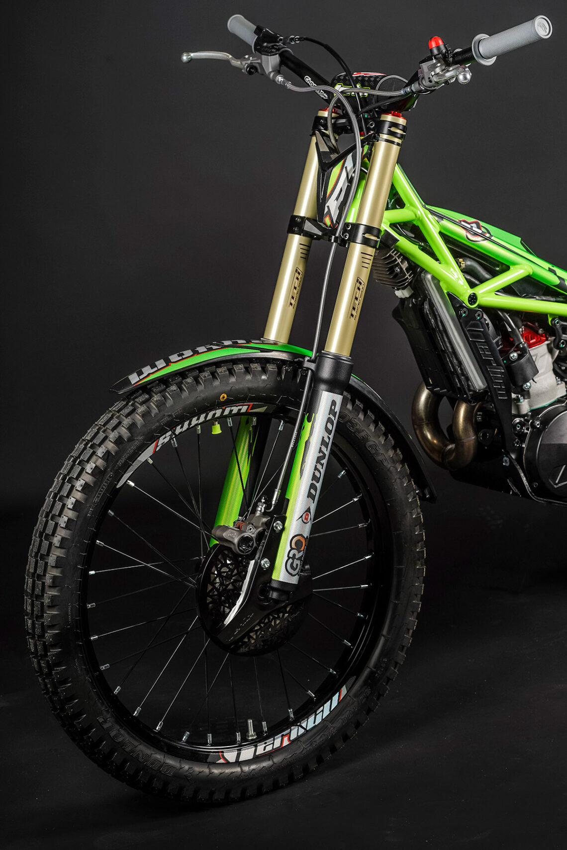 También es Crossbow el nuevo manillar mientras que el nuevo protector es de la propia Vertigo. La palanca del cambio es ahora más ligera y robusta con una puntera de microfusión con mejor tacto y agarre. También son nuevas las llantas Morad de aluminio anodizado en negro con buje de la misma marca forjado en aluminio y radios de color negro.