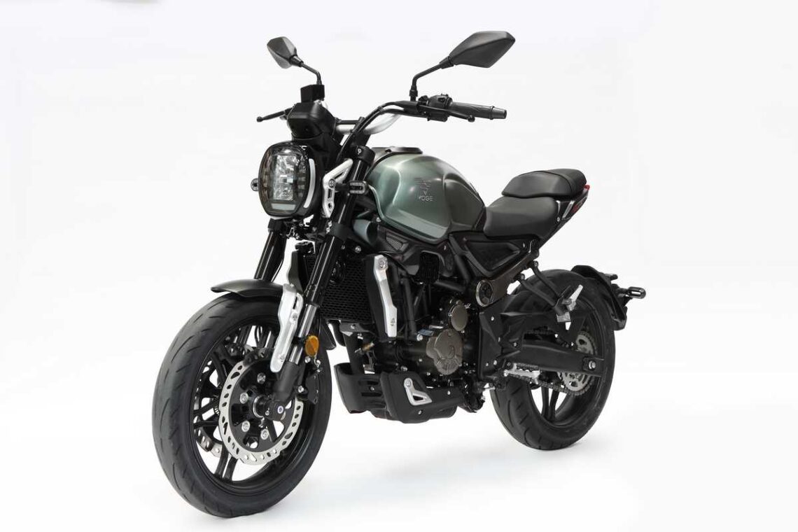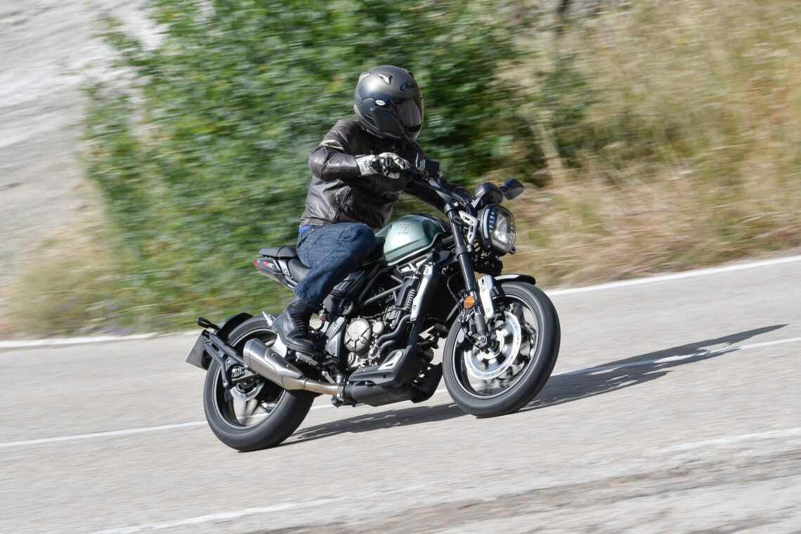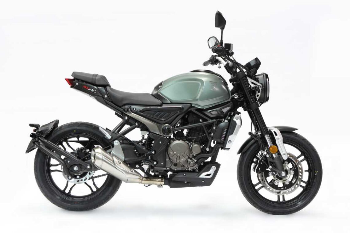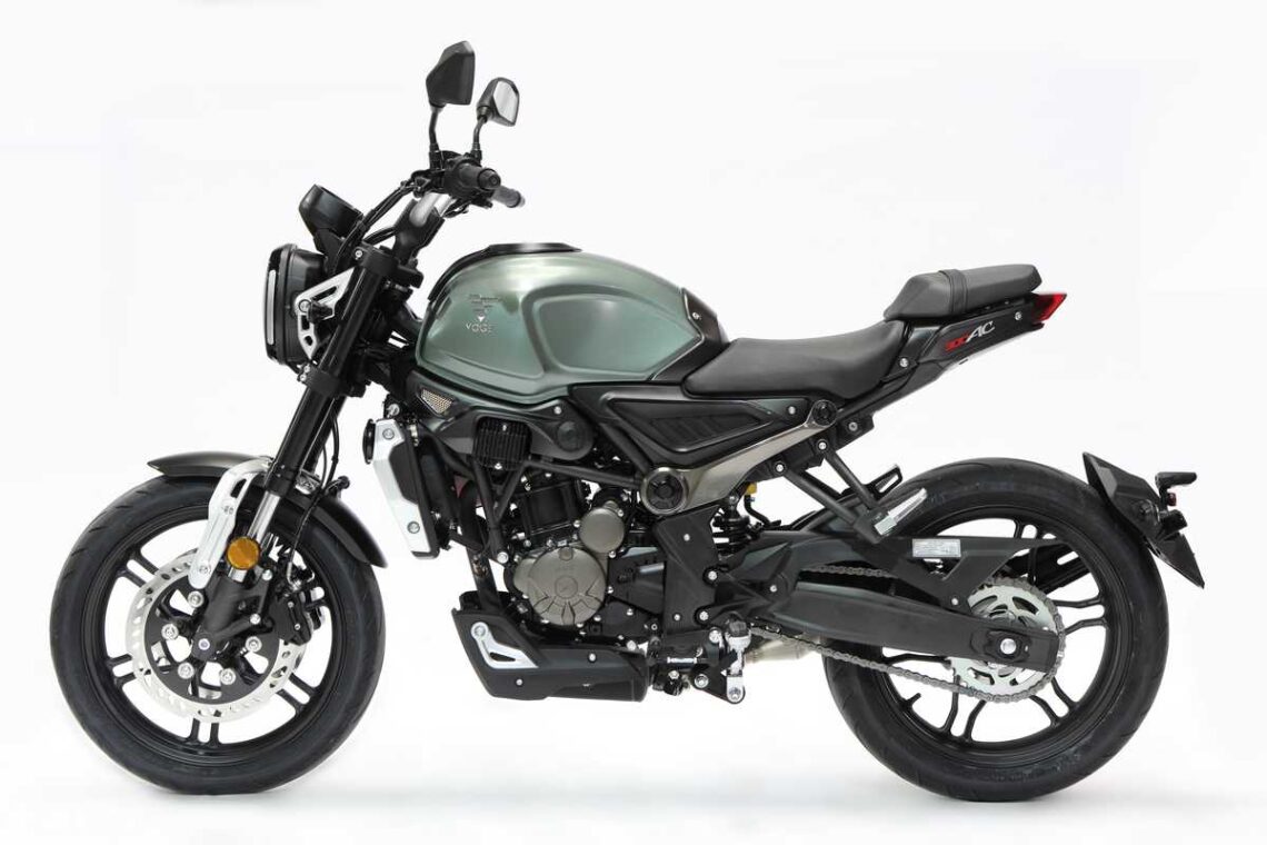 La Voge 300AC es seguramente la moto con más personalidad del catálogo de la marca del grupo chino Loncin. Se trata de una moto A2 con aires neo-retro muy claros, con detalles vanguardistas y vintage que la hacen reflejar un estilo muy particular y atemporal. Luce un acabado en negro combinado con el depósito en tonos oscuros (verde inglés o negro) que se completa con inserciones metalizadas en los soportes del faro, guardabarros delantero, laterales del radiador y quilla.