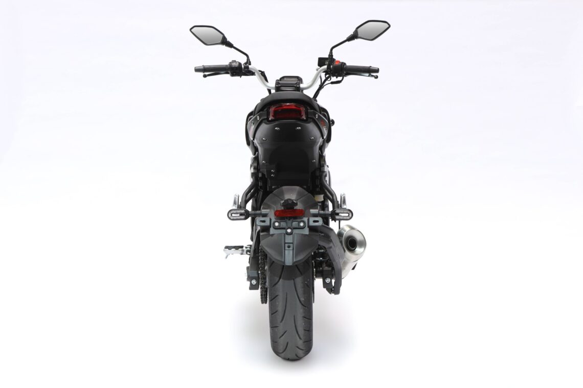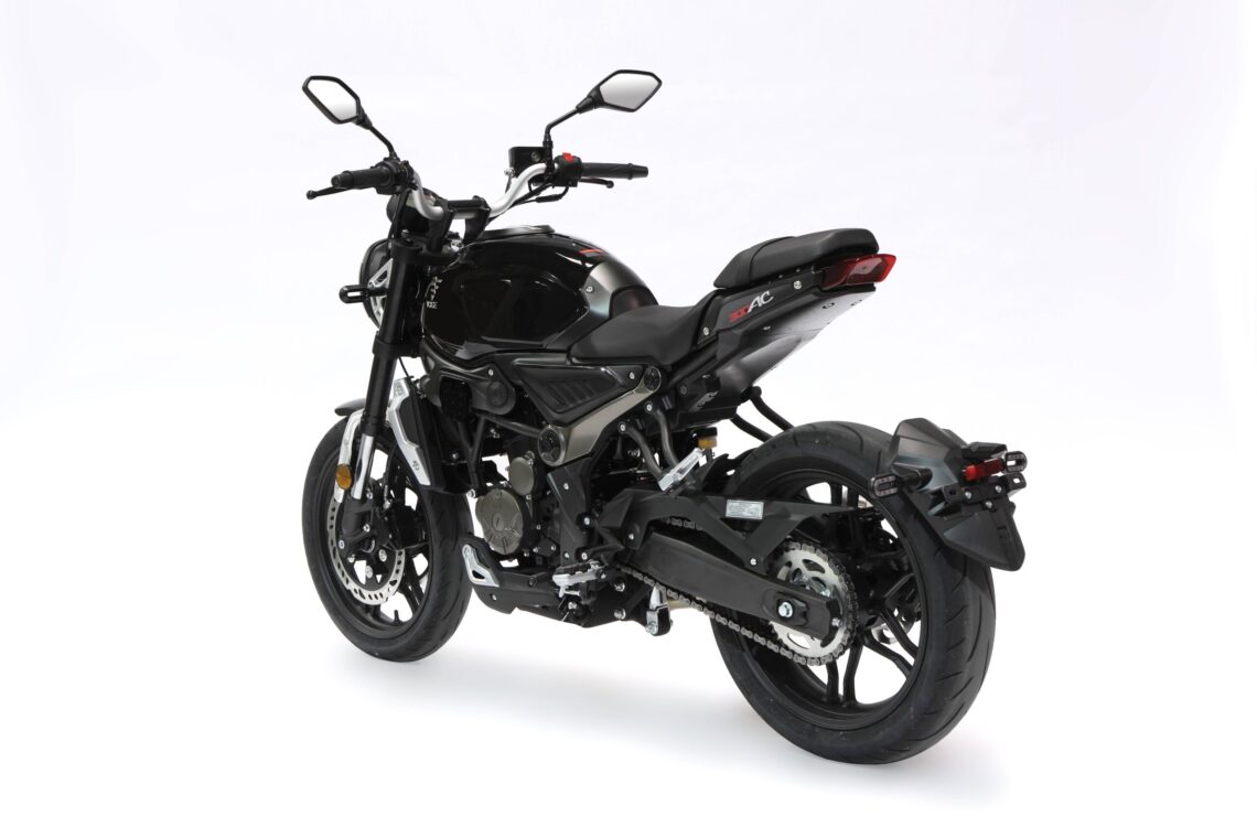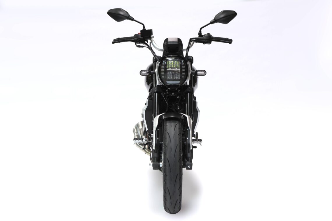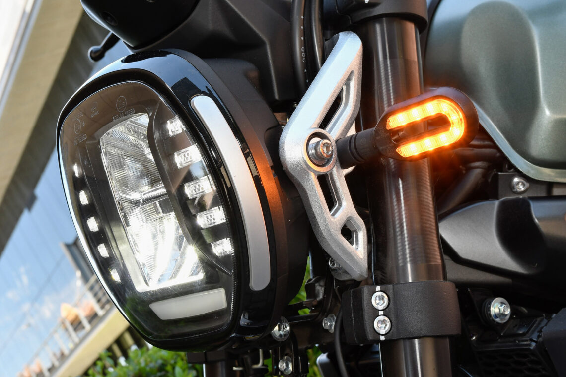 La Voge 300AC es seguramente la moto con más personalidad del catálogo de la marca del grupo chino Loncin. Se trata de una moto A2 con aires neo-retro muy claros, con detalles vanguardistas y vintage que la hacen reflejar un estilo muy particular y atemporal. Luce un acabado en negro combinado con el depósito en tonos oscuros (verde inglés o negro) que se completa con inserciones metalizadas en los soportes del faro, guardabarros delantero, laterales del radiador y quilla.
