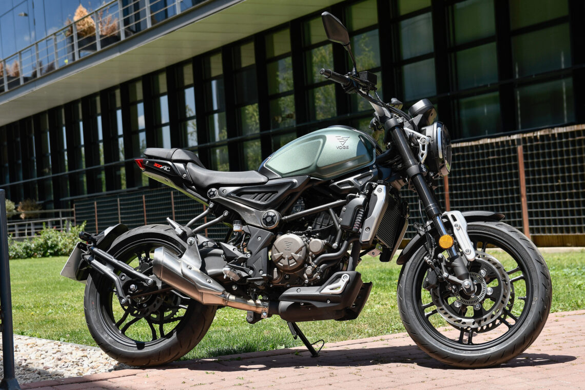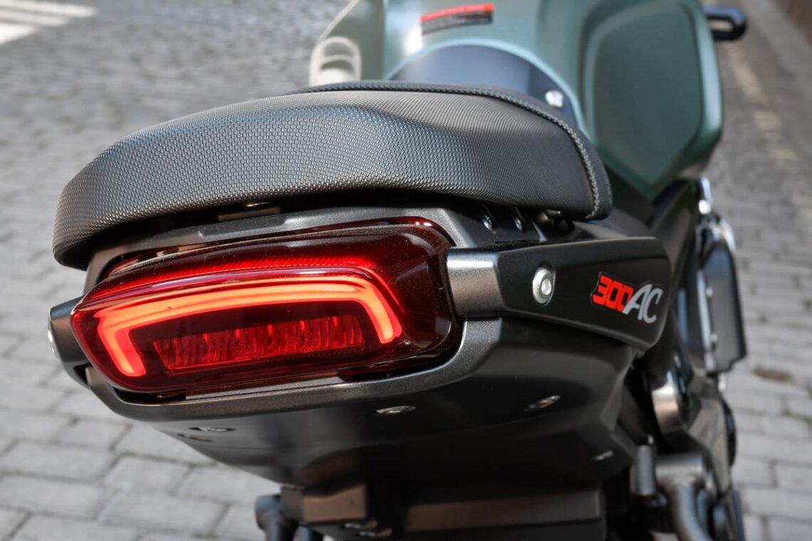 De la Voge 300AC hay que destacar su gran relación calidad-precio, con detalles como la horquilla invertida, llantas de aleación de seis palos dobles y doble disco delantero de 300 mm de diámetro con pinzas de doble pistón. Delante sorprende el faro redondeado LED y los intermitentes en forma de U. Comparte el mismo bastidor que sus hermanas de '300', pero con una ergonomía muy conseguida y una altura del asiento de 795 mm.