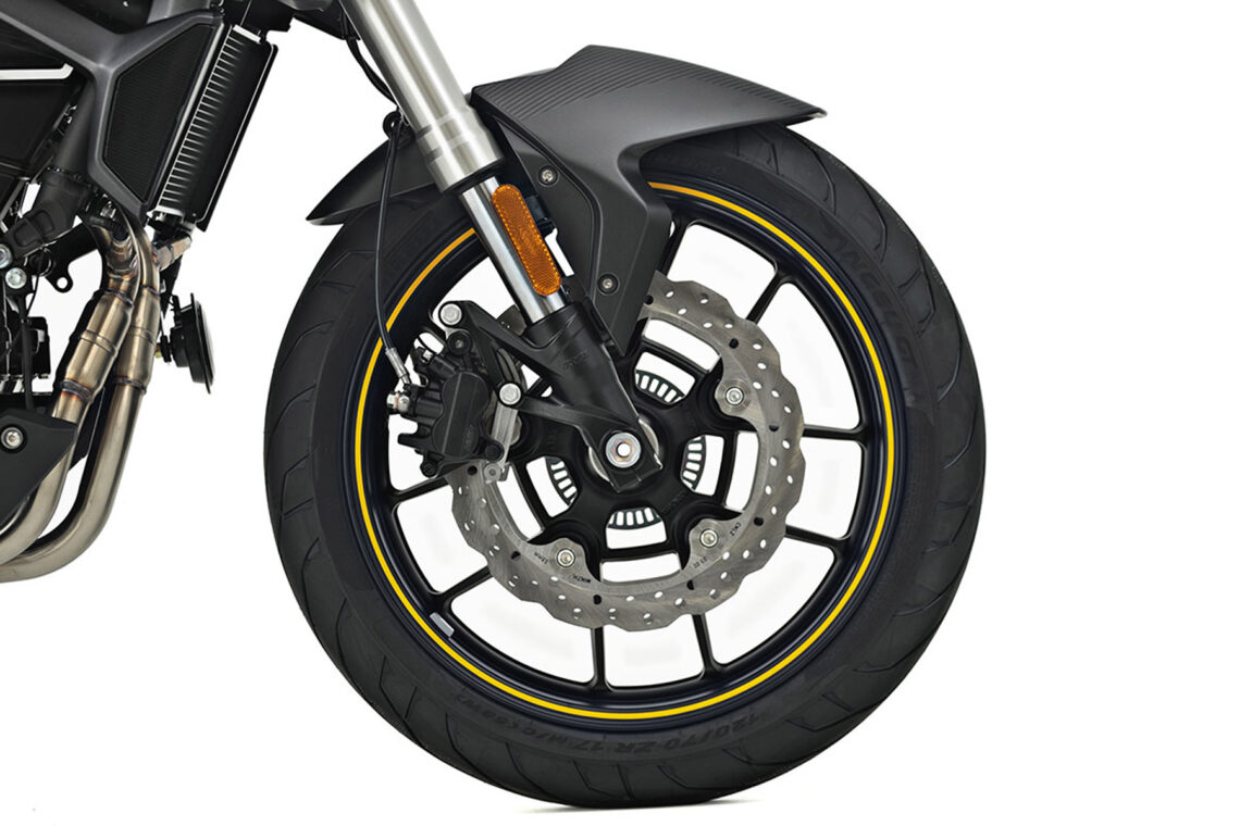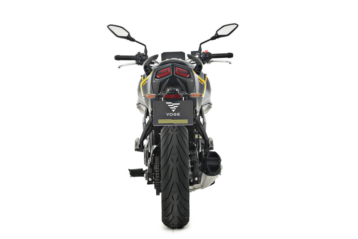 Si nos fijamos en sus ruedas vemos neumáticos Pirelli Angel ST, muy versátiles tanto para un uso deportivo como turístico incluyendo los desplazamientos urbanos del día a día. Si miramos las suspensiones vemos que Voge recurre al especialista japonés Kayaba (KYB) que aporta al tren delantero una horquilla invertida con barras de 41 mm y recorrido de 150 mm, mientras que en el tren posterior se emplea un amortiguador de funcionamiento progresivo mediante bieletas, con un recorrido al amortiguador de 57 mm. Y si concluimos la parte ciclo con los frenos, encontramos componentes Nissin, con un doble disco delantero de 298 mm mordido por pinzas flotantes de doble pistón y anclaje radial, al que se suma otro trasero de 240 con pinza de un pistón. El ABS es de doble canal.