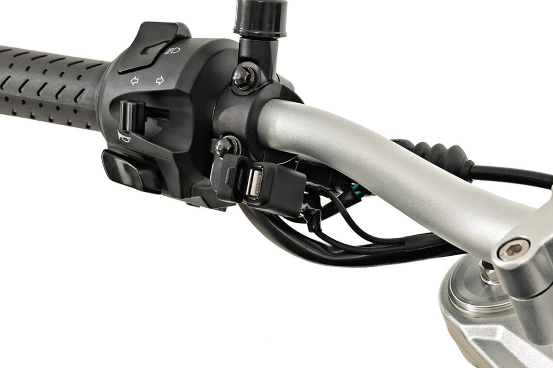 Estéticamente también encontramos cambios. La Voge 525R estrena nuevos colores gris oscuro y plata, con el logo del modelo a ambos lados de la parte delantera del depósito de 16,5 litros de capacidad. Para la iluminación se confía al 100% en la tecnología LED y, otra de las grandes mejoras que encontramos la vemos en su panel de instrumentos, ahora representado por una pantalla digital a color en negativo (caracteres blancos sobre negro) con retroiluminación LCD y de gran tamaño (7 pulgadas) que ofrece toda la información necesaria. Junto a la piña izquierda se ofrece una toma USB.