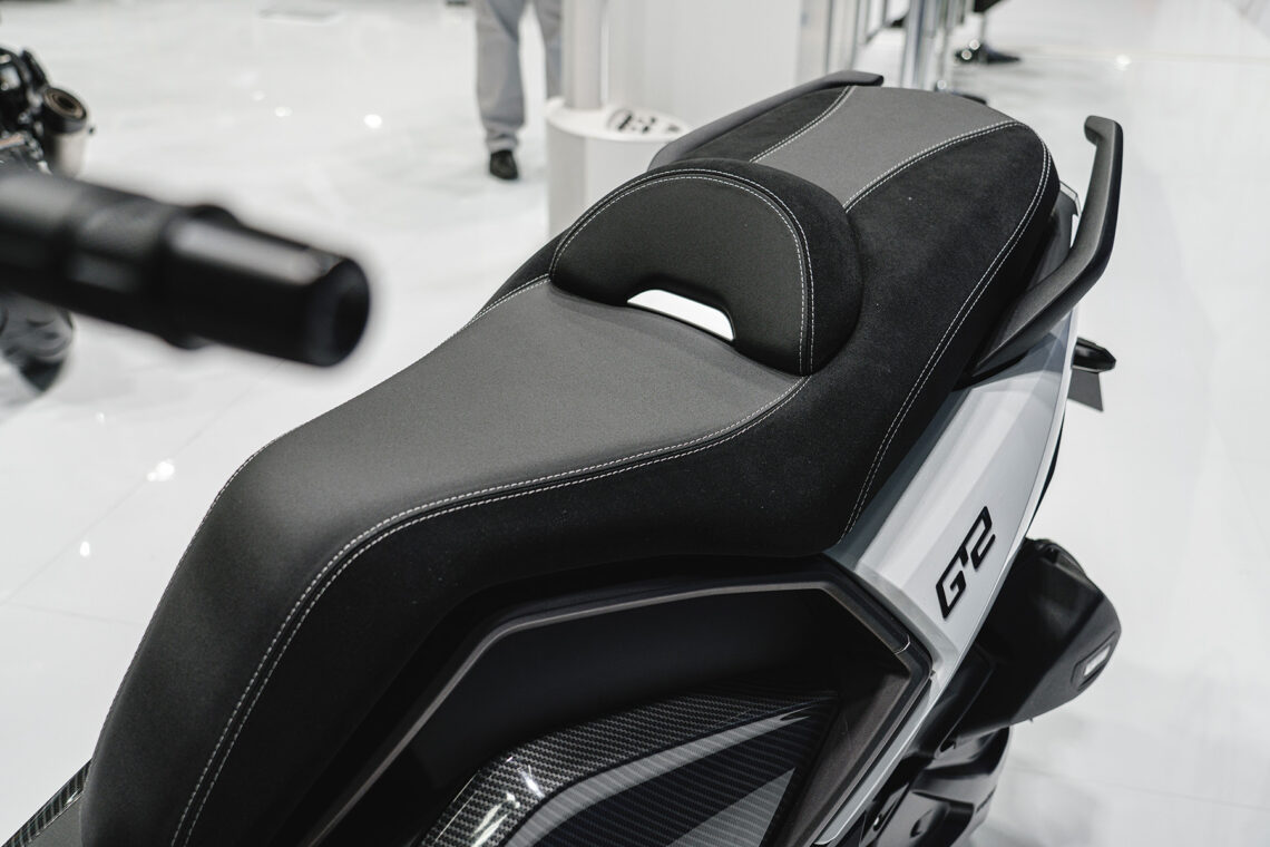 El asiento en dos niveles llama la atención y gana protagonismo en el conjunto, bien integrado, con doble textura, costuras visibles, respaldo ergonómico para el piloto y dos asideros para el pasajero.