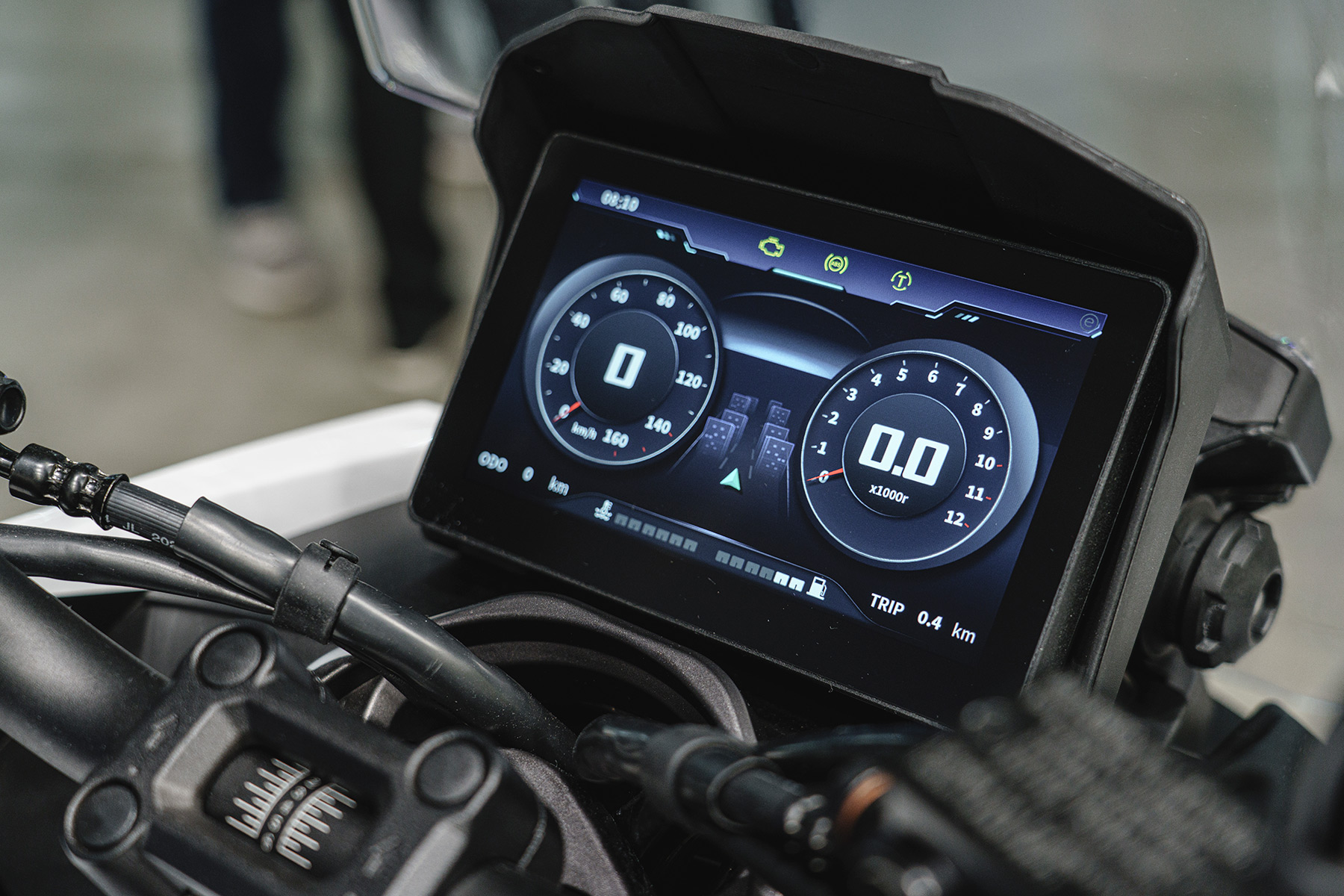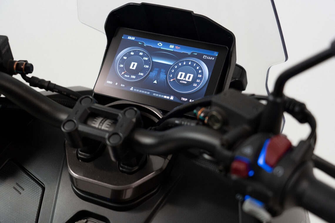 Todo lo puedes controlar a través de una pantalla TFT a color de 7" con 5 niveles de luminosidad ajustables manualmente y donde se muestra una información muy completa. Esta pantalla dispone de conectividad por Bluetooth para gestionar funciones multimedia (llamadas entrantes y reproductor de música) e incluye navegación por GPS giro a giro. La navegación por la pantalla se puede realizar mediante el conmutador izquierdo.