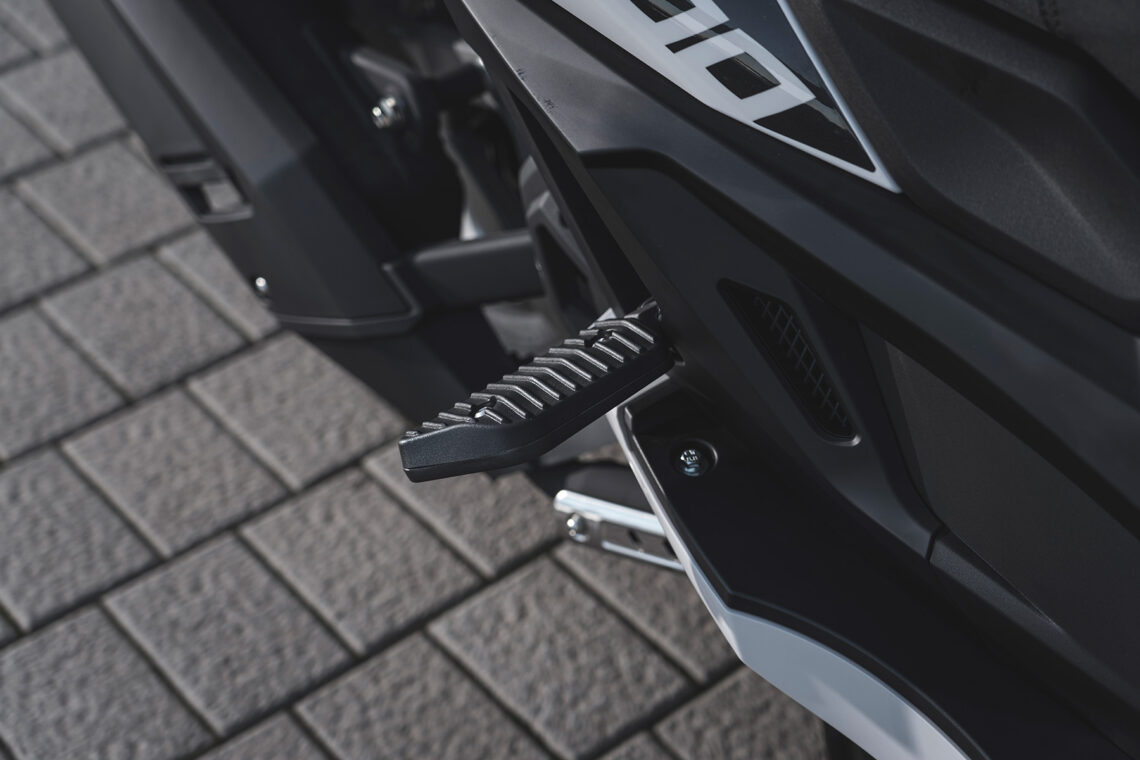Hay que destacar la tecnología que incorpora el Storm-S 300 de Wottan Motor. Por ejemplo, la espectacular pantalla TFT a color de 5" con dos relojes analógicos que hace la instrumentación similar a la de un automóvil. La frenada también se ha potenciado, con pinzas radiales de cuatro pistones en la rueda delantera y sistema ABS en ambos ejes. Su capacidad de carga es alta, ya que bajo el asiento puedes guardar un casco integral y un casco jet, al que se accede pulsando un botón frontal de apertura fácil y cómoda. También dispone de otros elementos interesantes como un sistema de seguridad en la cerradura con pulsador para abrir el asiento y el depósito de gasolina, la suspensión trasera con regulación de precarga, un puerto USB para recargar el móvil o el GPS, un apoyo lumbar para el piloto que hace más confortable el uso de la unidad en desplazamientos prolongados, y un robusto caballete central para asegurar el estacionamiento de tu scooter 300.