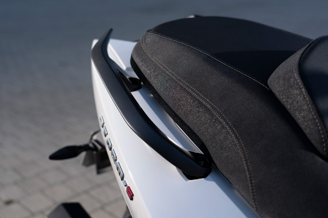 Lo primero que llama la atención del Storm-S es su diseño. Firmado por Alessandro Tartarini, se nota el buen gusto por las líneas modernas y fluidas, pero siempre pensando en la funcionalidad. Sus espectaculares luces son LED, sobre todo la trasera con efecto 3D. La cúpula ahumada remata el estilo deportivo general del vehículo.
