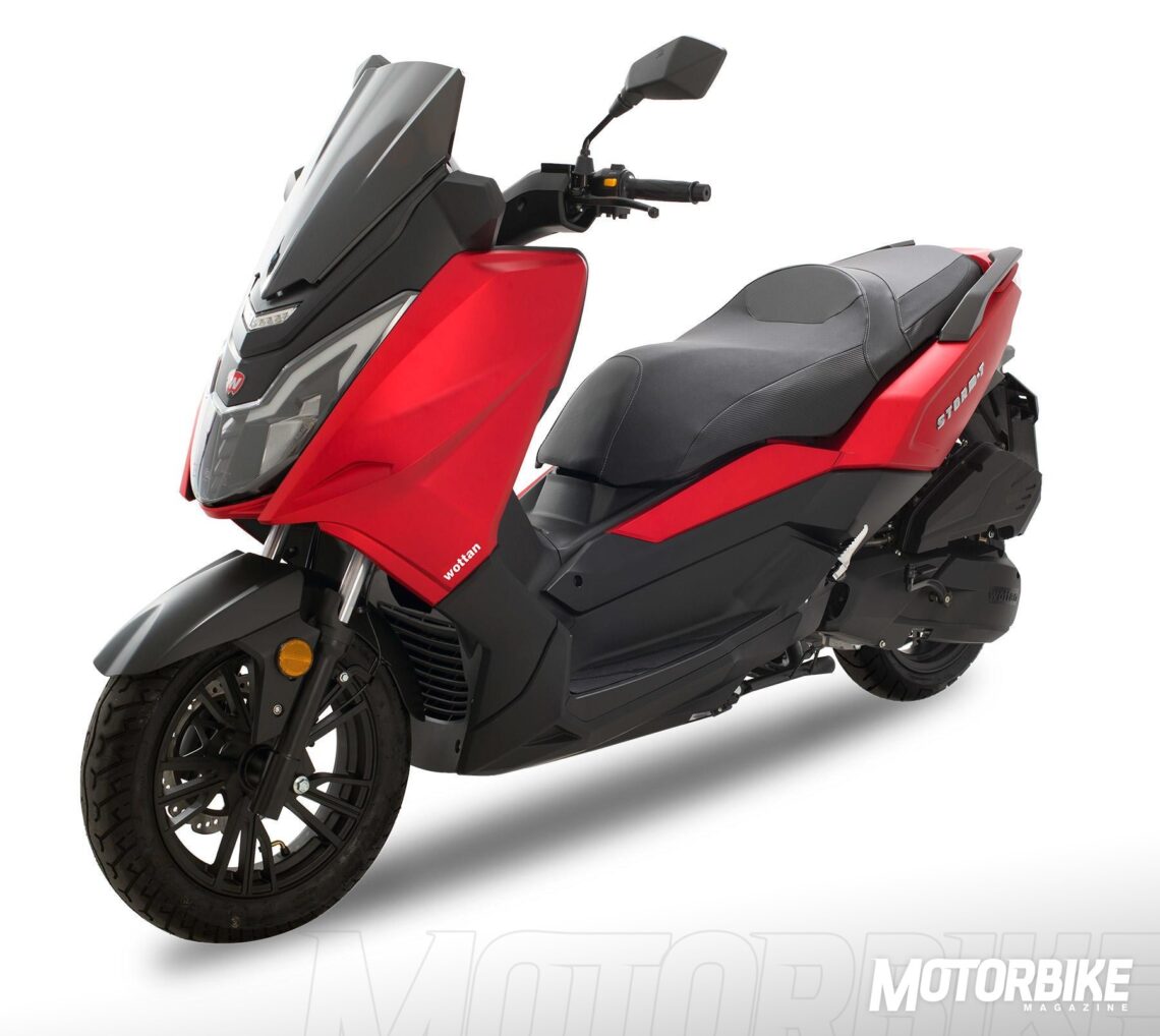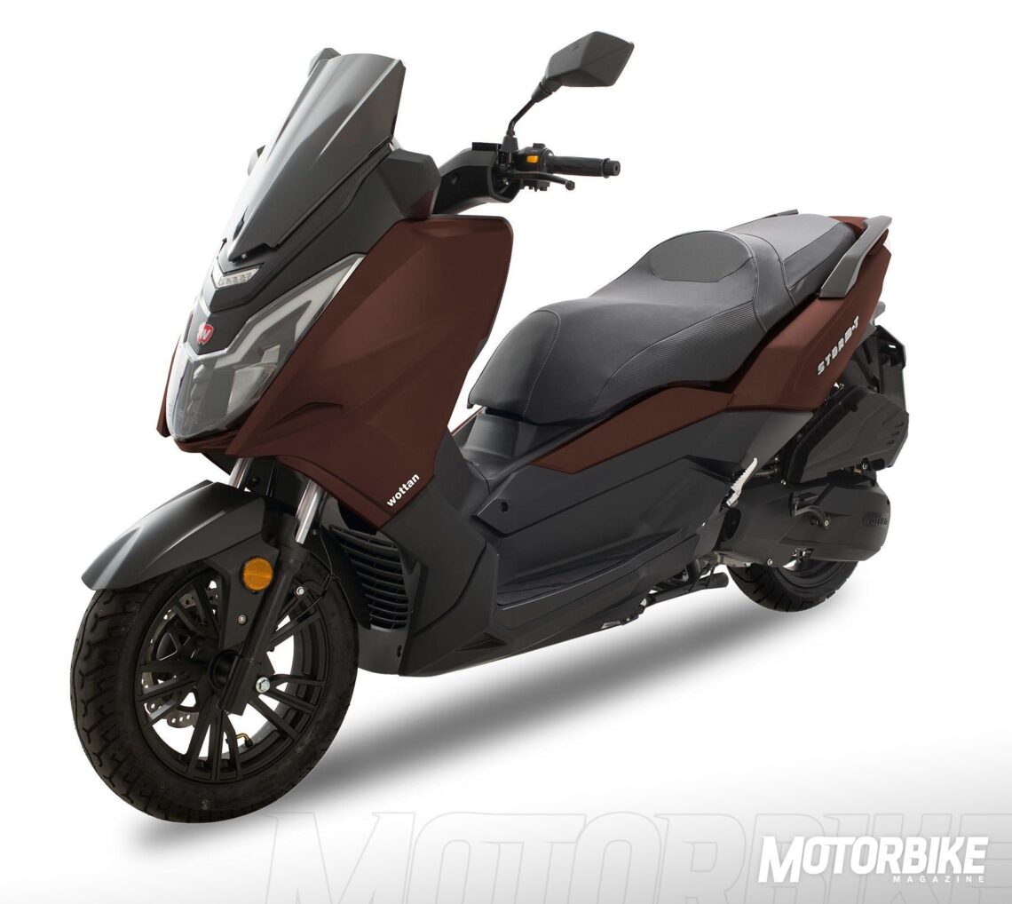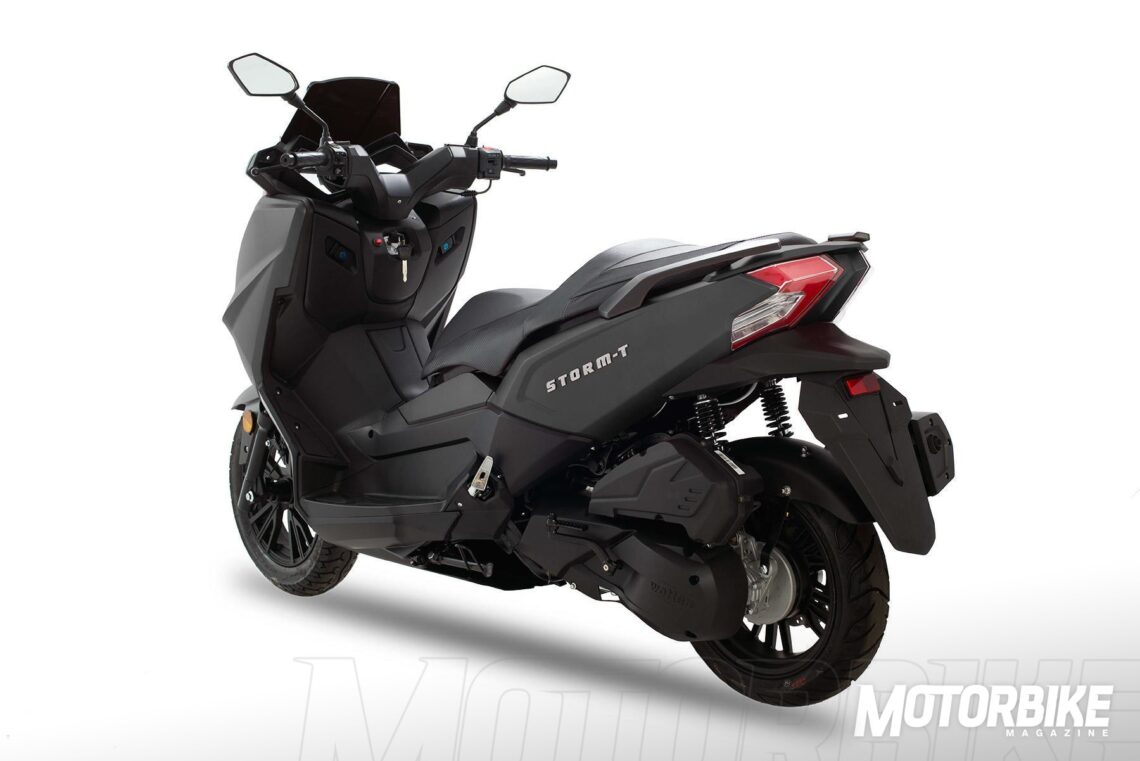 El Storm-T 125 es un scooter 125 que se basa en el Storm 125 de Wottan Motor, pero con algunas mejoras. Tiene un enfoque más turístico, con formas más suaves, sobre todo en la parte delantera y trasera. Es el primer scooter de la marca en incorporar ciertos detalles como las luces LED en luces, intermitentes, DRL y luz de posición, lo que repercute en una mejora de la iluminación delantera en un 40%. A través de la instrumentación y un voltímetro incorporado, puedes conocer el nivel de carga de la batería. En la pantalla multifunción también tenemos el nivel de gasolina, los kilómetros totales y parciales y la hora, además de un velocímetro y un cuentarrevoluciones grandes,