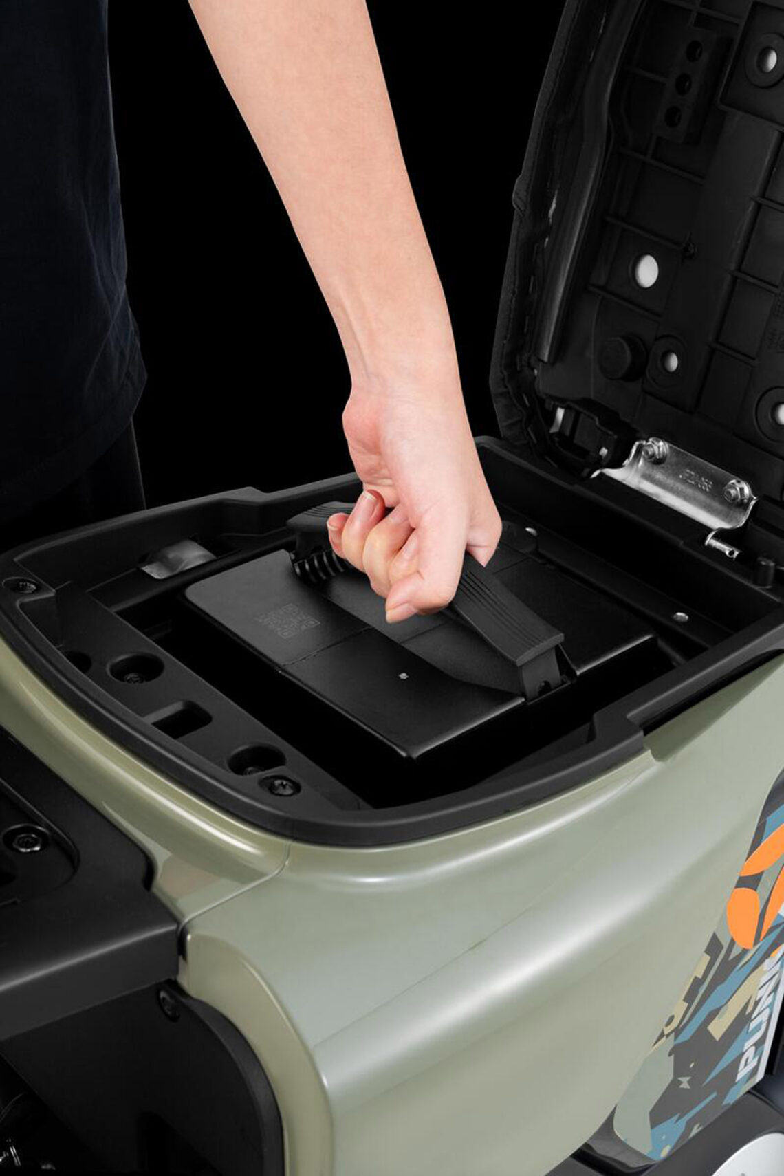 Uno de los aspectos clave del Yadea GFX es su sistema de alimentación. Incorpora una batería de litio extraíble de 1.152 Wh, desarrollada por ATL, el mayor fabricante mundial de baterías. Su autonomía alcanza los 65 km (WMTC), lo que permite realizar varios trayectos sin preocuparse por la recarga diaria.