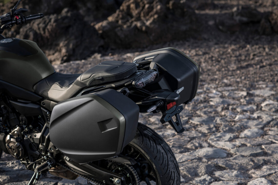 La marca también ha incorporado a la Tracer 7 GT 2021 maletas laterales de 20 litros de la gama de accesorios originales de Yamaha. Vienen equipadas con soportes y cierres de seguridad y a pesar de ser esbeltas, no aumentan demasiado las dimensiones compactas de la moto. Además, el usuario puede incorporar otra serie de piezas compatibles con la Tracer 7 GT que Yamaha pone a su disposición para mejorar el rendimiento, la protección y la comodidad de la moto.