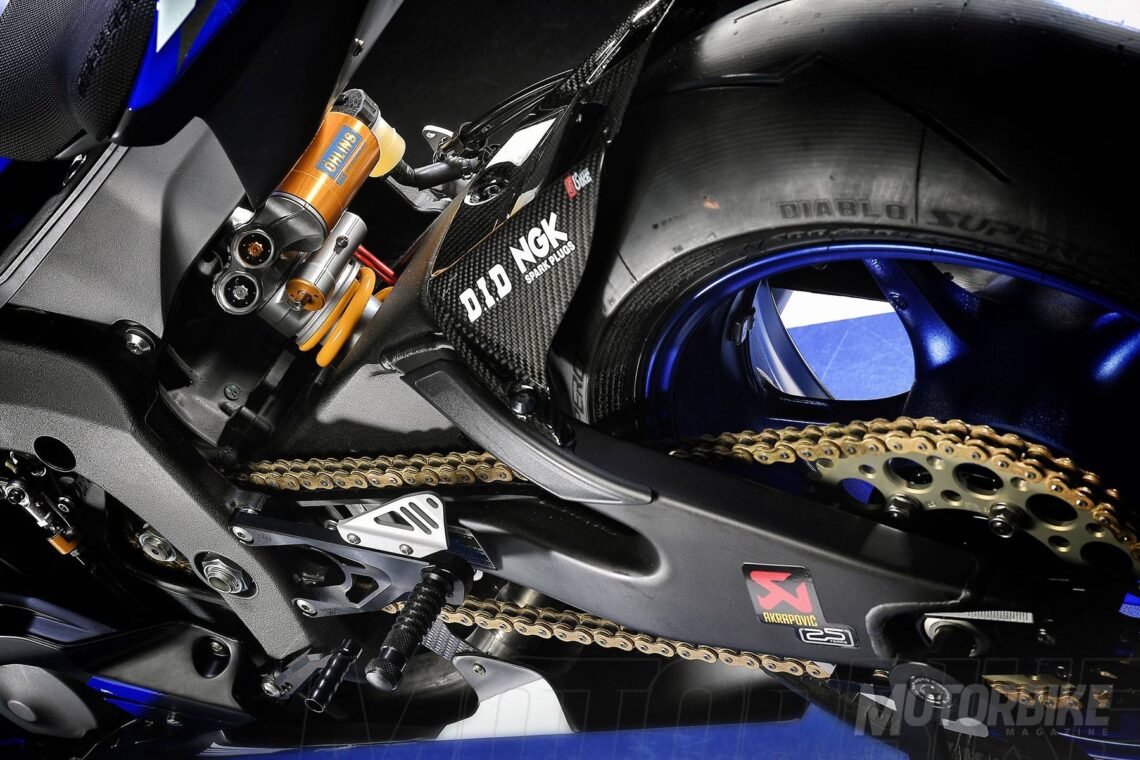 Esta Yamaha YZF-R6 2017 de carreras tiene además un carenado completo de dos piezas frontal y asiento monoplaza, un sistema de escape Akrapovic Evo de titanio, frenos Brembo T-Drive delanteros (discos de 320 mm), disco trasero de 220 mm con pinza Brembo, horquilla invertida de 43 mm Öhlins Cartridge y neumáticos Pirelli Diablo según regulaciones (120/70 ZR17M/C - 180/55 ZR17M/C).