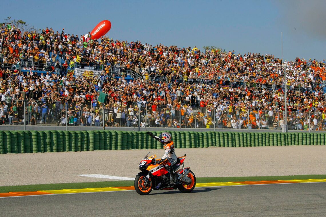 - 45 – GP de Valencia 2012 (MotoGP) – En una carrera loca, ganó saliendo desde pit-lane. Cerró su mejor año con siete triunfos.