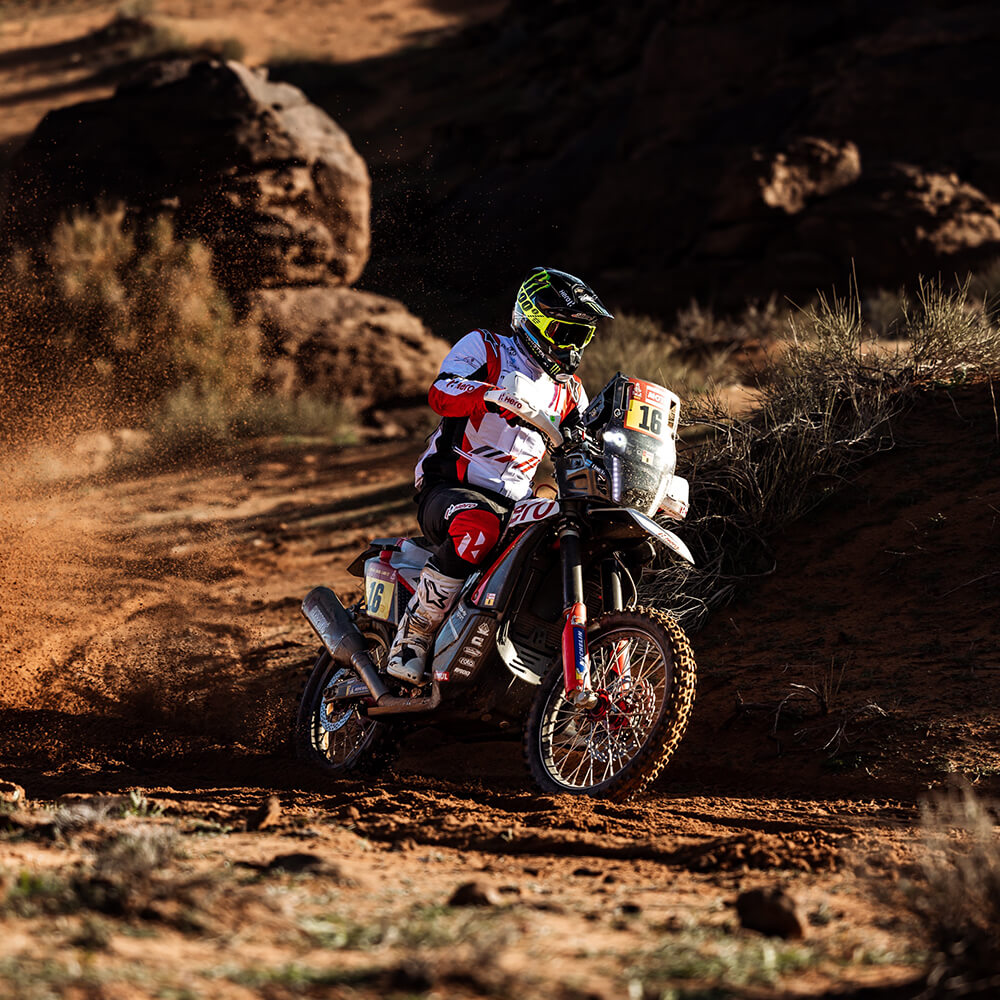 Los nuestros hicieron una gran cuarta etapa. Lorenzo Santolino finalizó noveno, a poco más de diez minutos de su compatriota. También se lució Tosha Schareina, hoy 12º y dando un buen salto en la general hasta ocupar el 15º puesto provisional (+1h03'21''). Joan Pedrero mantiene su línea en 'Original by Motul' y finalizó 23º. Sandra Gómez cruzó la meta 60ª, por detrás de Mirjam Pol, la líder en féminas.
