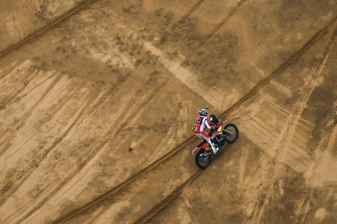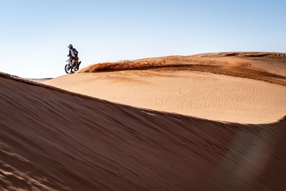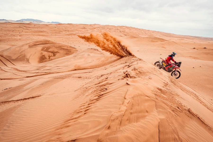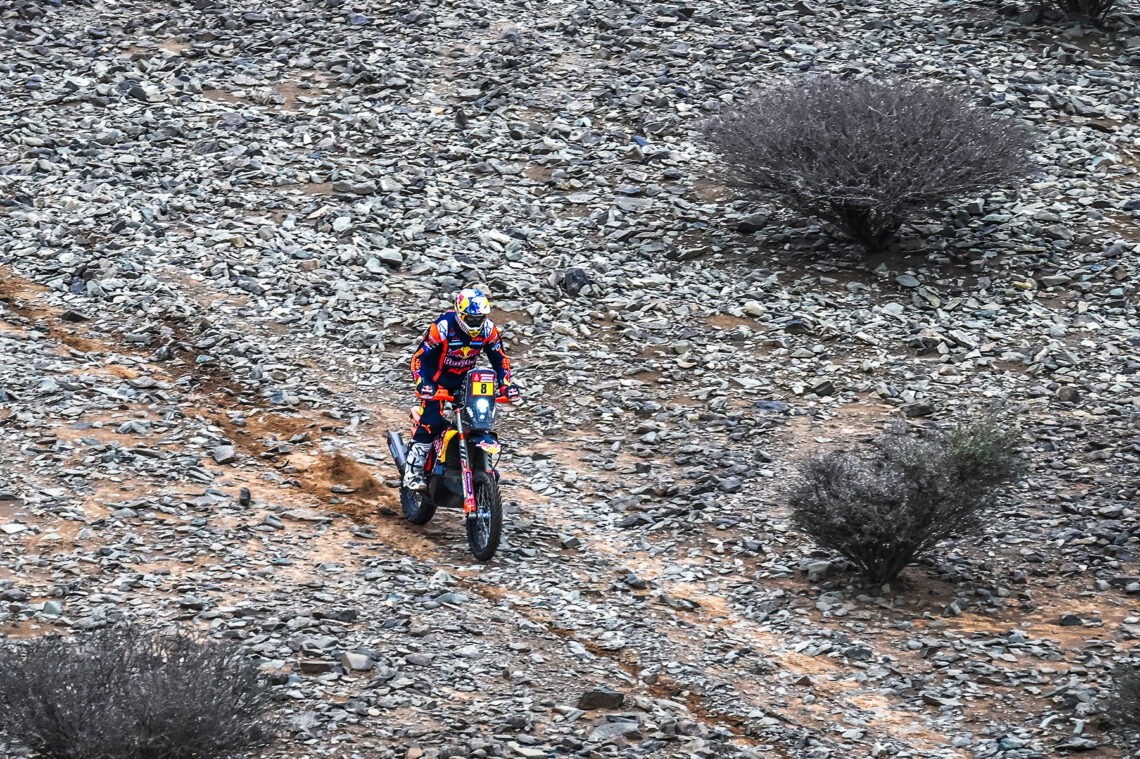 Mason Klein volvió a auparse al liderato de la carrera tras una octava etapa en la que Ross Branch fue el ganador. El piloto de Hero se redimía así del problema que tuvo dos días antes, en el que se quedó sin gasolina y, por ende, sin ninguna opción de luchar por las posiciones de privilegio en el Dakar. Por su parte, Joan Barreda acabó 14º y cedió varios minutos que ahora le tienen en la octava plaza de la general a 9'08" del liderato. El mejor español de la jornada dominical fue Lorenzo Santolino (9º). Aquí puedes ver las mejores imágenes de esa octava etapa, con inicio en Al Duwadimi y final en Riad: