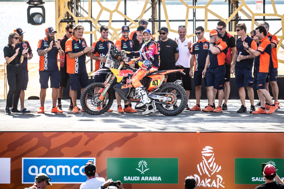 El de Bostwana estaba pletórico tras su segundo puesto final, ya que era su mejor resultado histórico y también el de Hero. Adrien Van Beveren, compañero de Brabec, también mejora su mejor resultado. No pueden decir lo mismo los pilotos del Grupo PIERER Mobility AG, con Kevin Benavides en cuarta posición como mejor de la marca austriaca. Por primera vez desde el año 2001, ninguna moto de la marca de Mattighofen se sube al podio final.