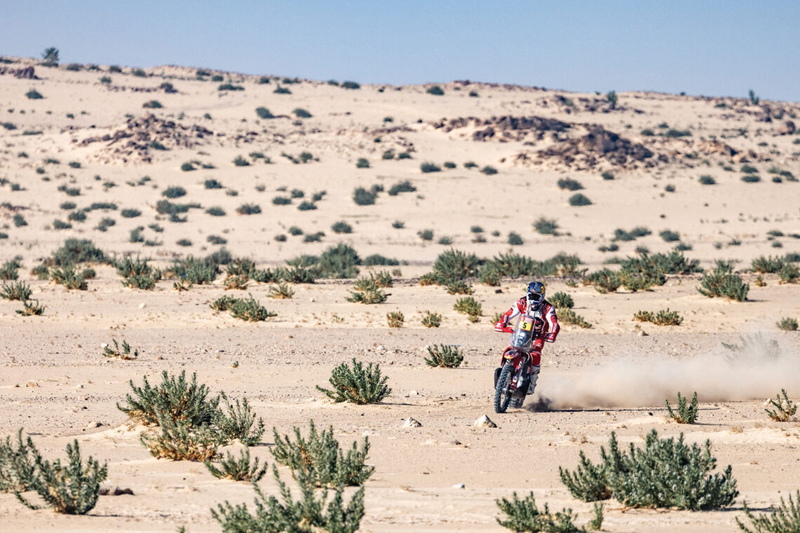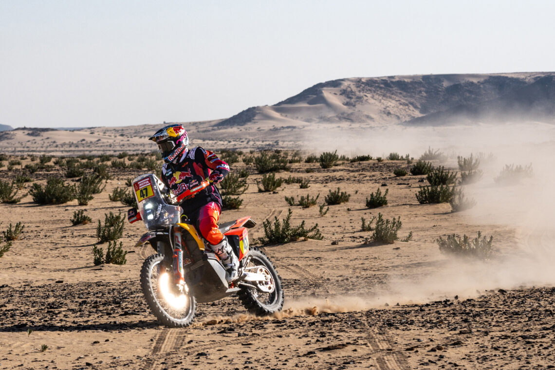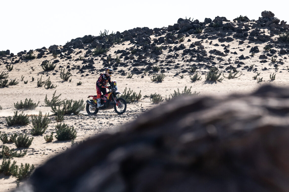 Kevin Benavides (Husqvarna) y Ricky Brabec (Honda) fueron los primeros en abrir pista, por lo que finalmente fueron bonificados por ello. De hecho, el estadounidense finalizó segundo hoy y el argentino fue tercero. El camino correcto siempre resulta confuso sin referencias, pero ambos se defendieron al frente.