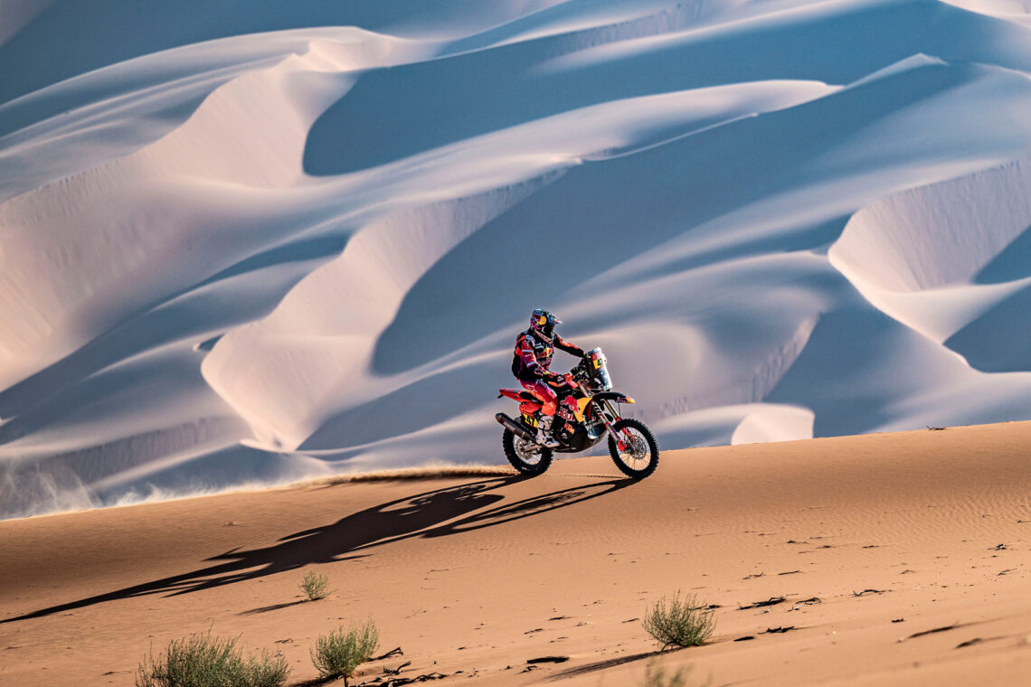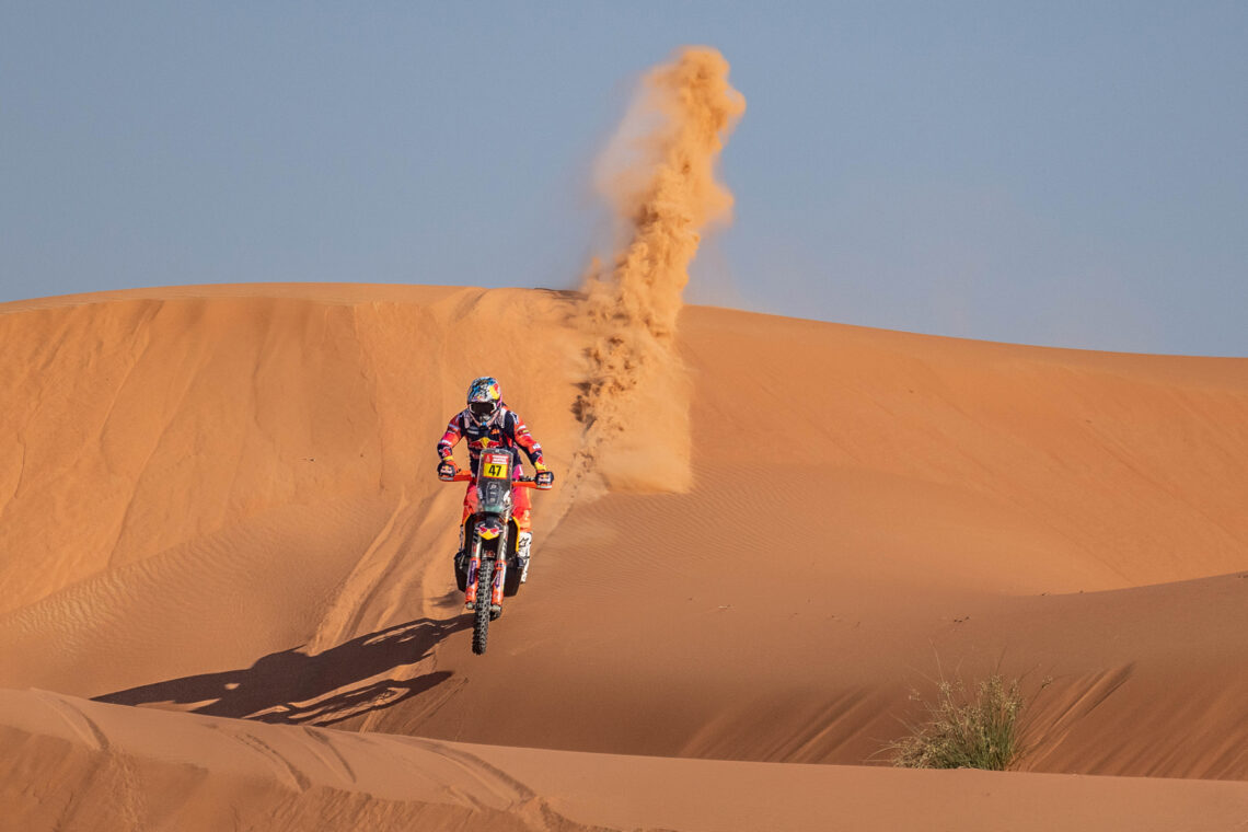 Y más dunas. El nuevo formato, llamado 48h Chrono Stage, estaba plagado de dunas, y en ese terreno destacó Adrien Van Beveren. El francés lideró la primera parte (6A) por delante de su compañero Ricky Brabec. Un inicio de sexta etapa en la que Joan Barreda se dejó casi media hora por abrir pista. Se le pusieron muy cuesta arriba las cosas al castellonense, pero fueron a peor.