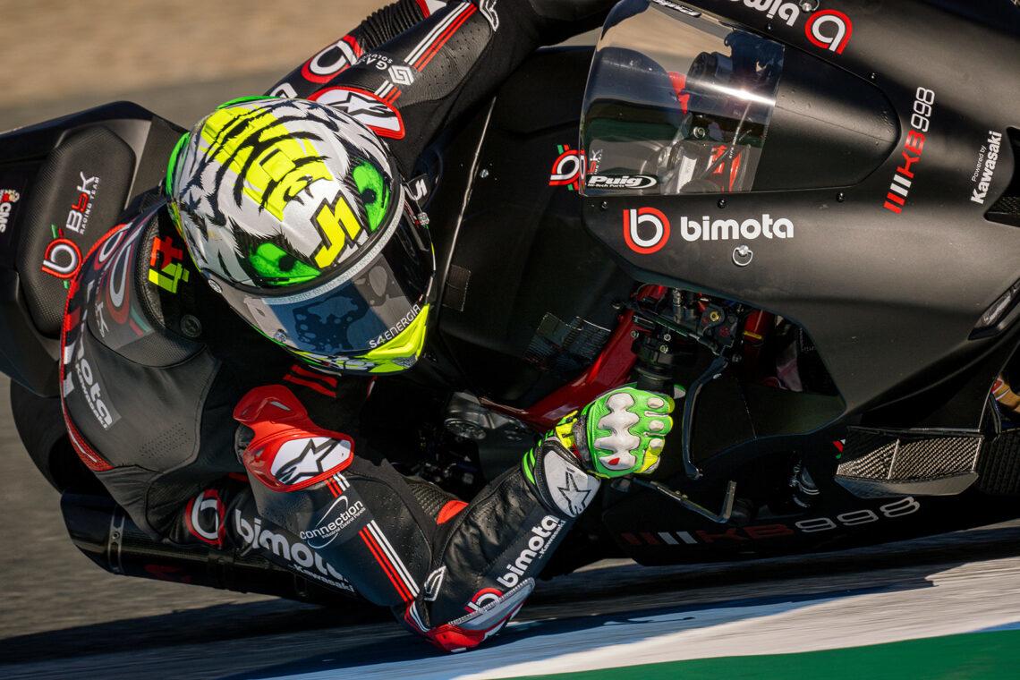 Alex Lowes, tras cinco años con el Kawasaki Racing Team y la Ninja ZX-10RR, explicó algunas diferencias y las nuevas sensaciones con la Bimota: «Es sorprendente. Creo que hay que pilotar la moto de una manera diferente, porque llevo cinco años con la Kawasaki, y sentía que podía exprimirla bien. Con esta moto creo que hay que ser un poco más suave. Tendré que cambiar mi estilo de pilotaje para sacarle todo el partido y entenderla un poco más. Ahora mismo, tengo la sensación de que no la estoy aprovechando. Aprenderé algo más en el próximo test. Es difícil de entender cuando conozco tan bien la otra moto. El manejo y el giro está bien, es suave. Además de eso, las sensaciones y el esfuerzo van en función de si te sientes cómodo sobre la moto y los cambios de setup».