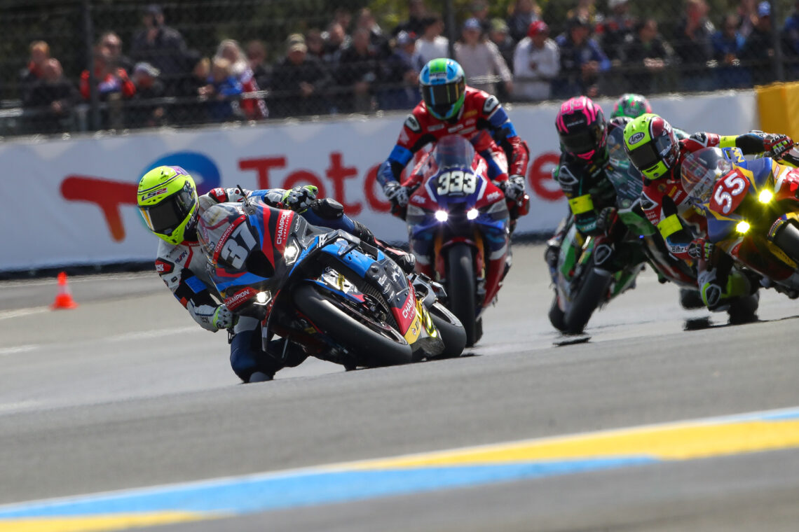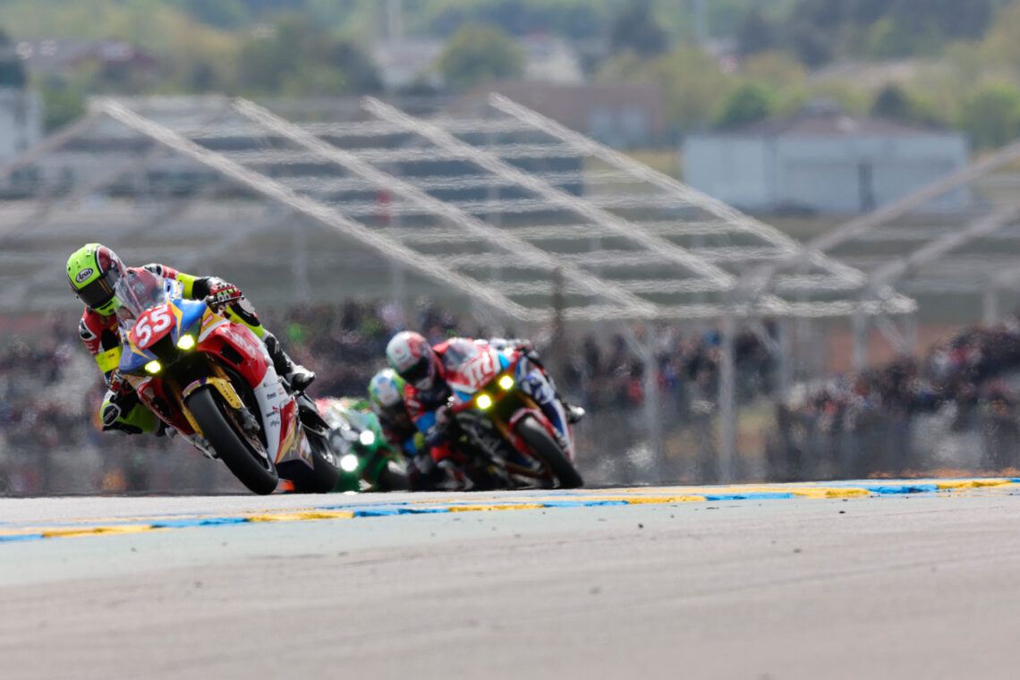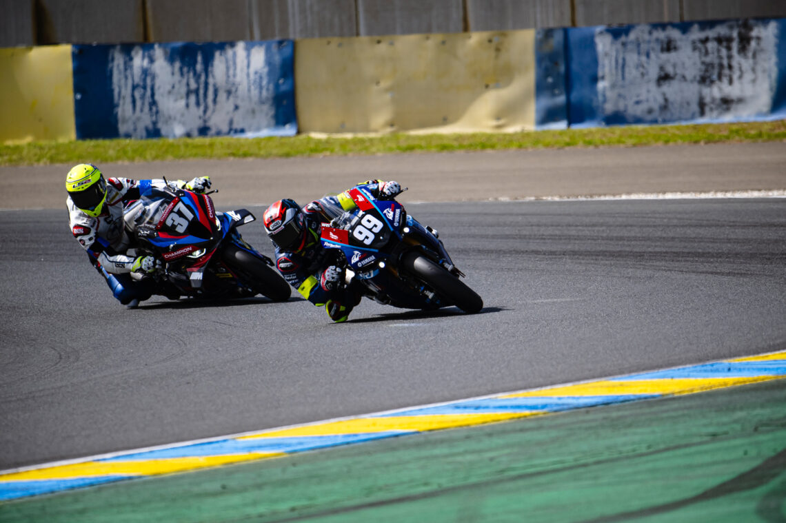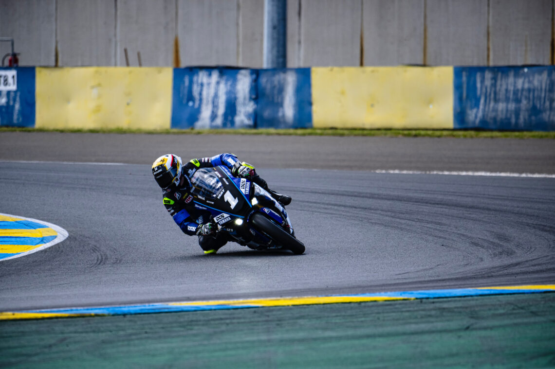 El YART Yamaha empezó defendiendo su corona con el #1 y la pole en el mítico trazado francés. Sin embargo, el Yoshimura SERT, con Gregg Black desde el inicio, hizo una gran salida y tomó las riendas de la carrera. Canepa pudo responder y recuperó un liderato que mantuvo hasta los primeros repostajes.