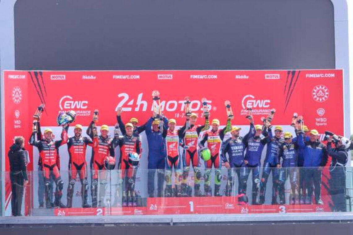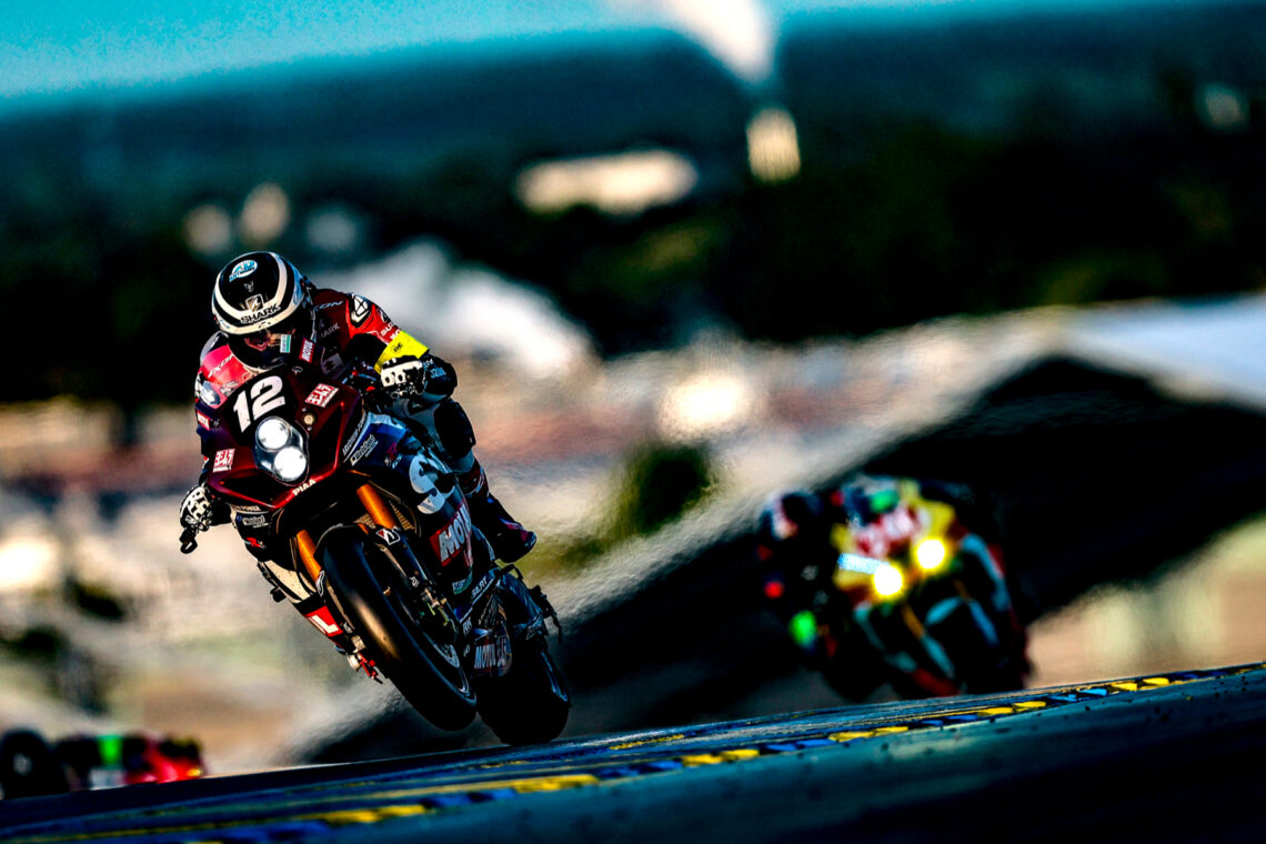 Sin embargo, Karel Hanika, del YART Yamaha, sufrió una caída antes de las 16 horas y le devolvió el liderato al Yoshimura SERT, que ya no soltó la primera posición hasta la bandera de cuadros. Los de Suzuki completaron 857 vueltas en Le Mans, una más que los de Yamaha. El podio lo cerraron el BMW Motorrad Endurance con 852 giros.