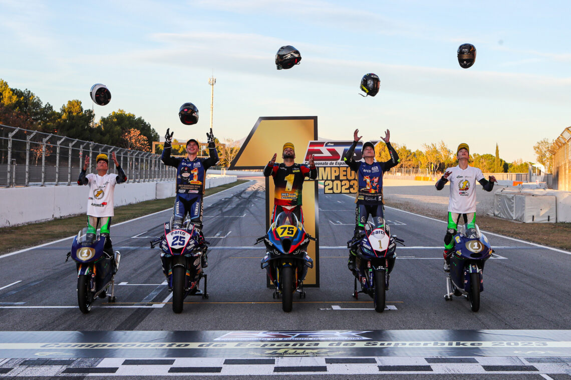 El Circuit de Barcelona-Catalunya terminó sentenciando los tres títulos que quedaban por definirse. Ivo Lopes (Superbike), Andy Verdoia (Supersport NG), Gonzalo Sánchez (SS300), Álex Longarela (Pre Moto3) y Andrés García (Moto4) son lo campeones de esta temporada 2023.
