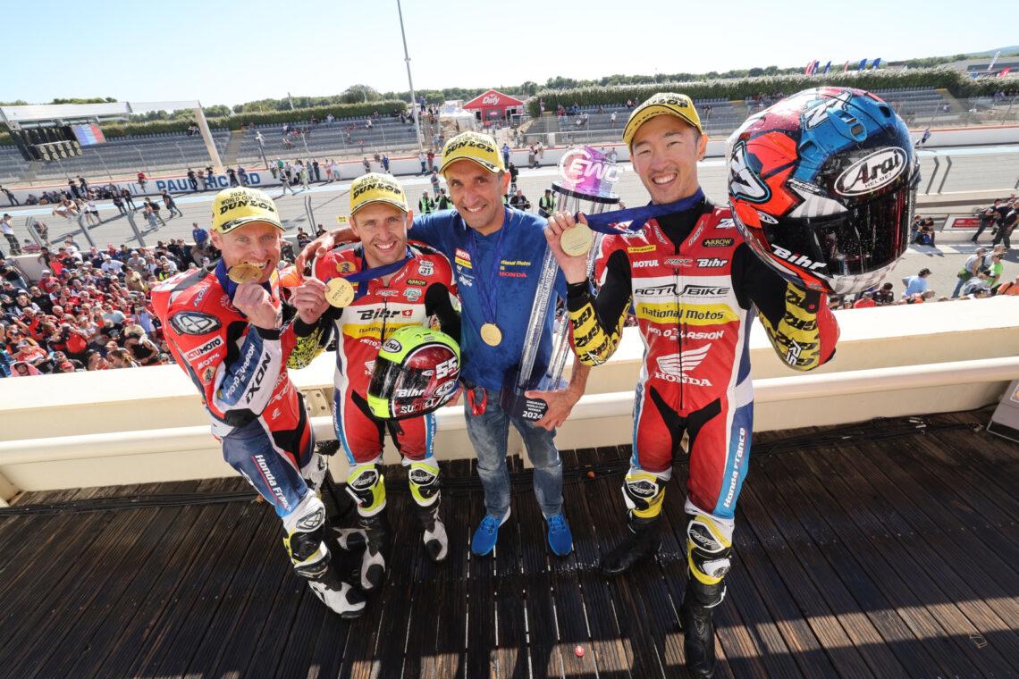 Suzuki vuelve a coronarse en resistencia con el Yoshimura SERT Motul. Después de hacerlo en 2021, el equipo japonés regresa a lo más alto al ganar en Paul Ricard y llevarse un nuevo entorchado a su casillero. Sus pilotos, Gregg Black, Etienne Masson y Dan Linfoot, hicieron una gran actuación durante las 24 horas de prueba, superando a los equipos punteros de Yamaha: KM 99 (2º, + 7 vueltas) y YART Yamaha (3º, +16 vueltas).