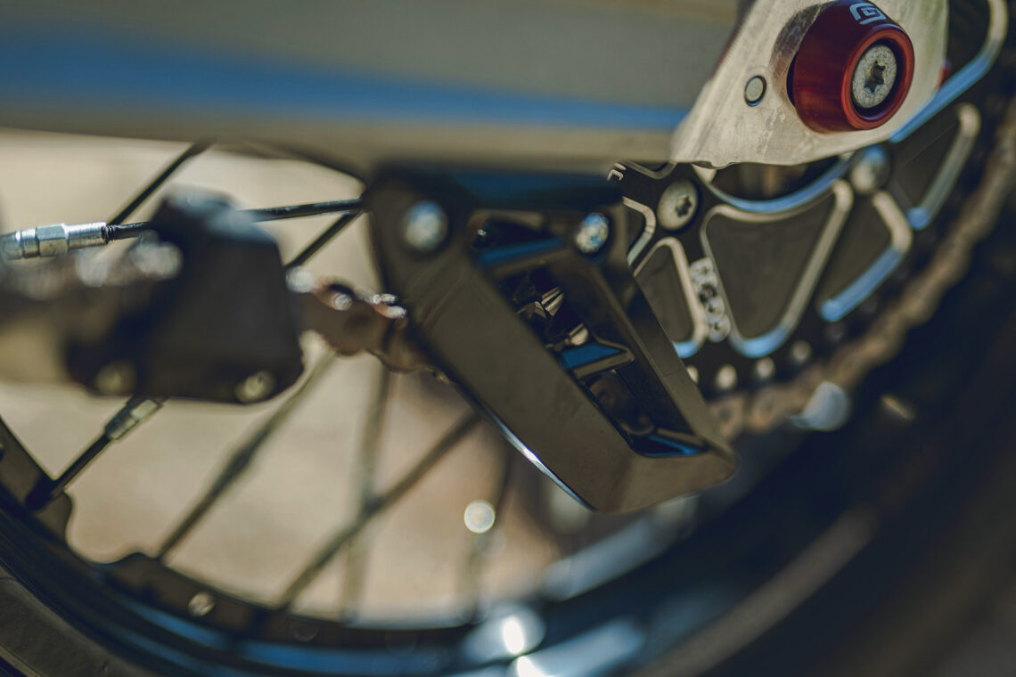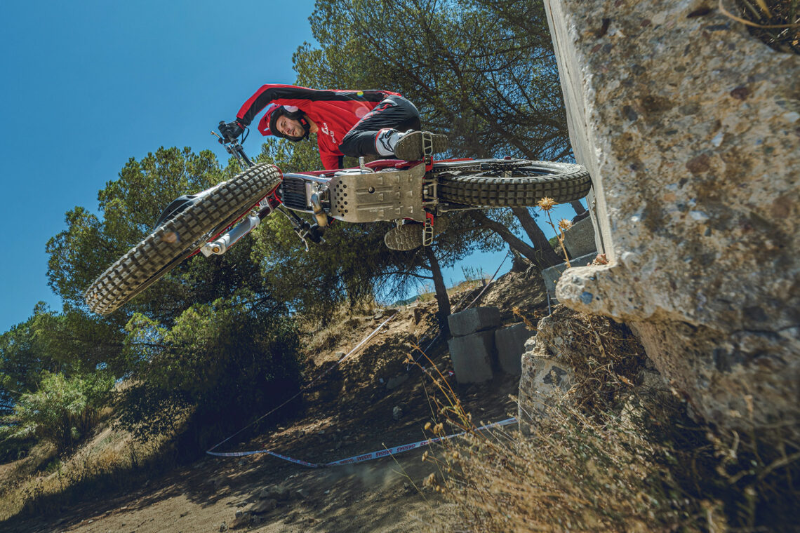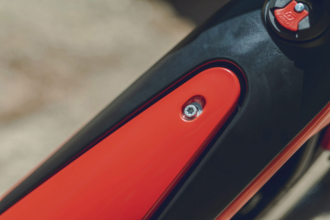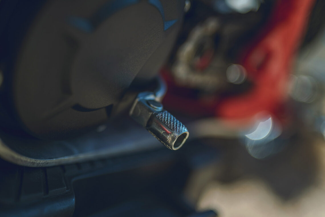 Si nos fijamos de cerca, se han cuidado los acabados y tiene detalles como el casi infinito guardabarros trasero elástico, que evitan roturas fáciles cuando la moto se cae, algo relativamente habitual en esta práctica off-road, o el acceso al filtro quitando únicamente un tornillo. Lo que sí echamos de menos es el arranque eléctrico, aunque el nuevo pedal facilita esta función considerablemente.