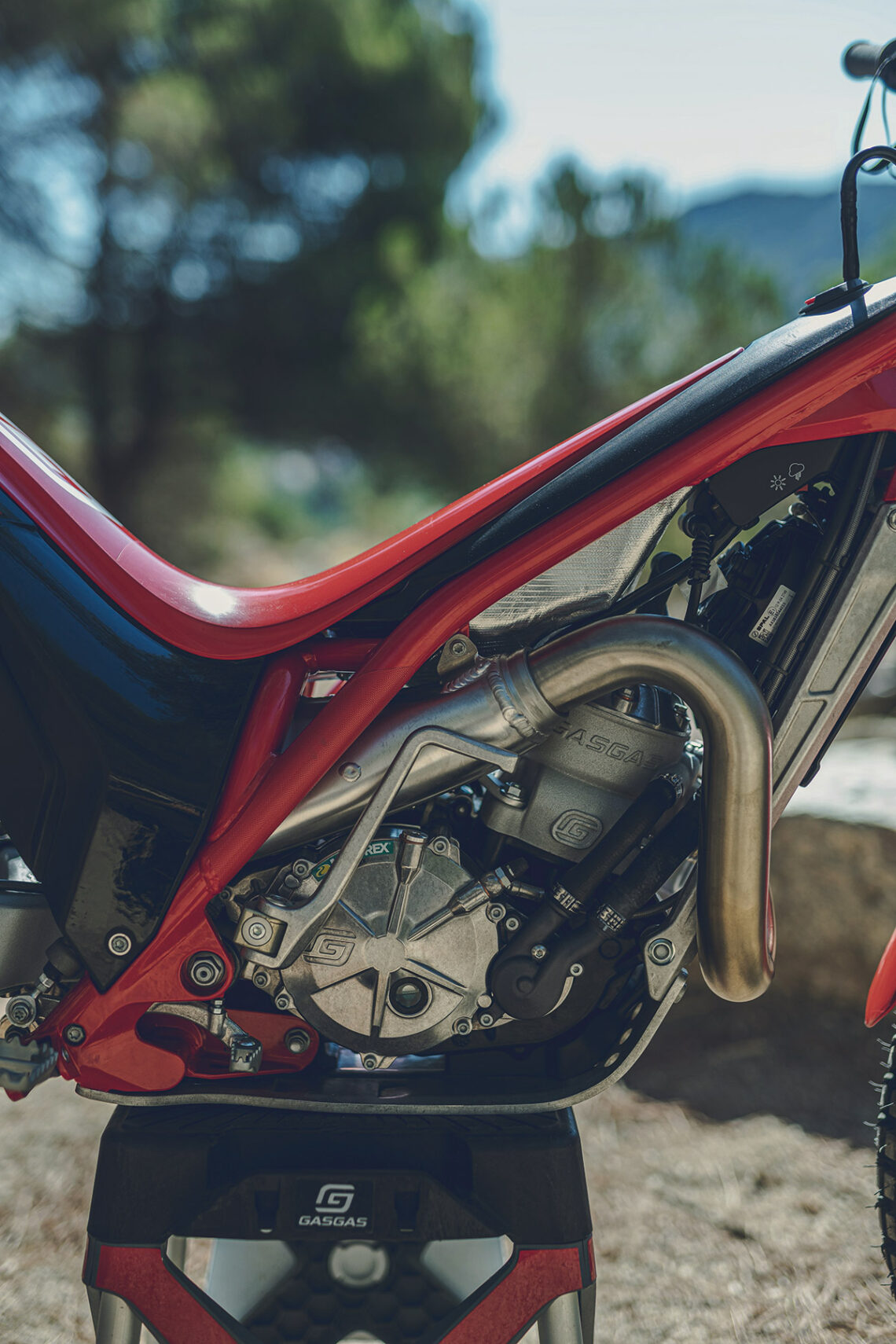 Cuando nos preguntamos por la evolución del modelo, a veces es difícil valorar cuán grande es el paso adelante que ha realizado la marca basándote sólo en una ficha técnica. Sin embargo, cuando te dicen que más del 80% de sus piezas se han modificado o sustituido, ya puedes ir haciéndote a la idea de que lo que vas a presenciar es algo profundamente novedoso. El objetivo era claro: mantener el espíritu competitivo de las GasGas TXT, pero haciéndolas ahora más amigables para el usuario medio y más fiables.