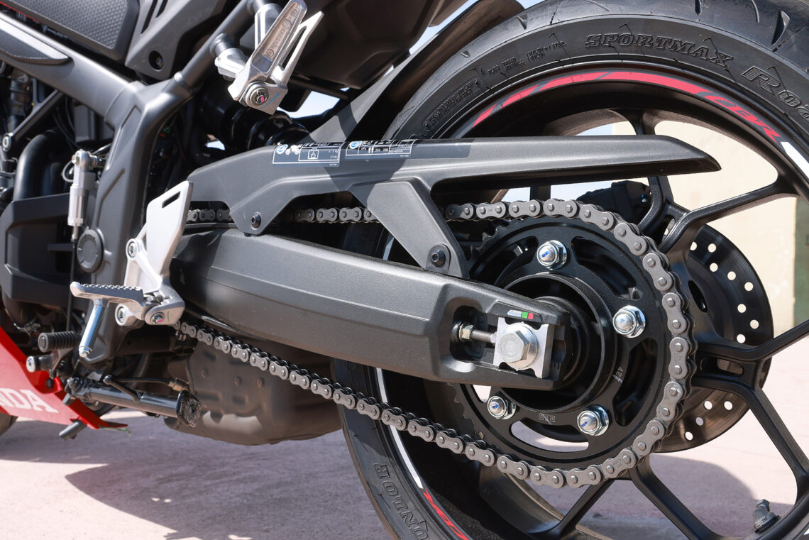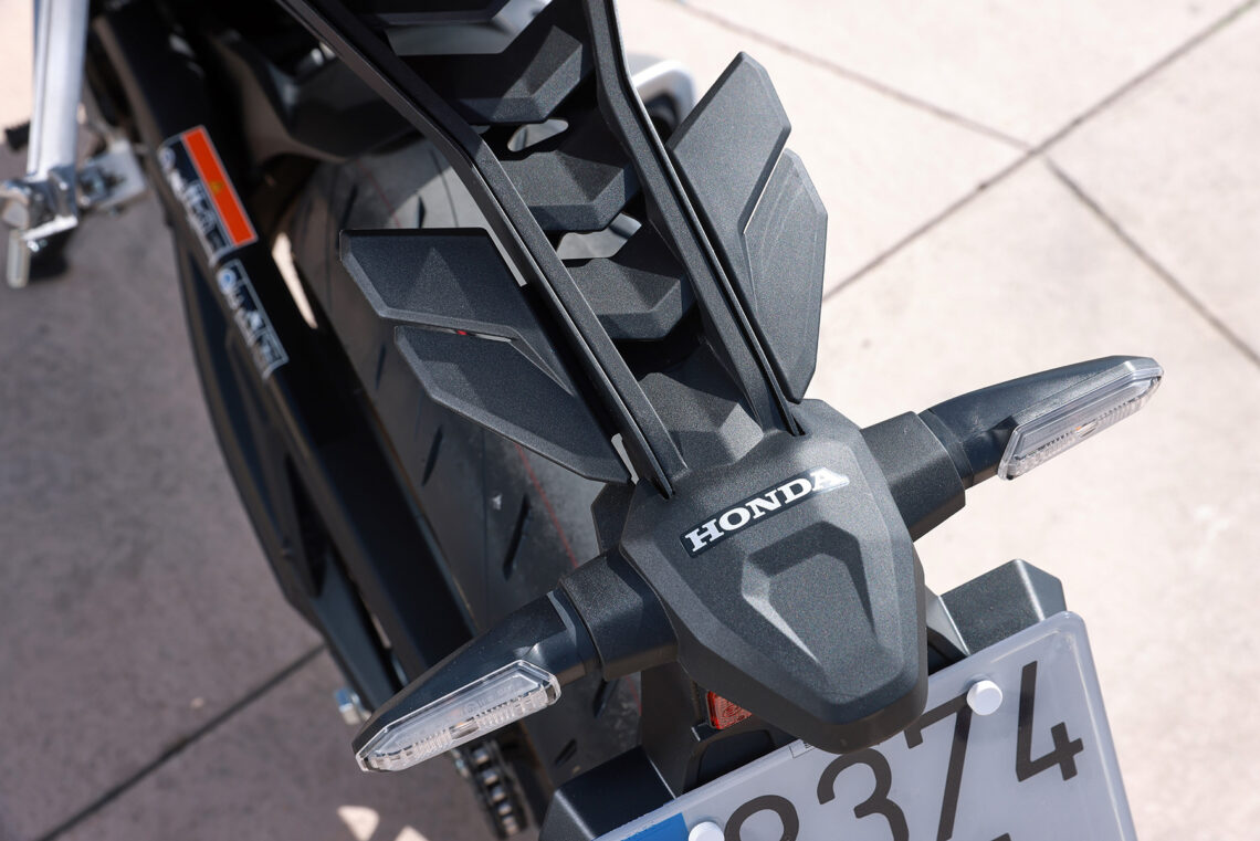 En lo estructural Honda sigue apostando por el chasis de acero perimetral en forma de diamante con subchasis soldado, y todo ello junto a un basculante de aluminio. La altura del asiento al suelo es de 810 mm y el peso total del conjunto es de 205 kg (207 kg con E-Clutch).