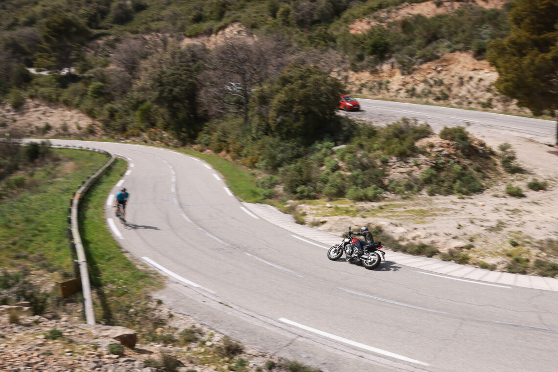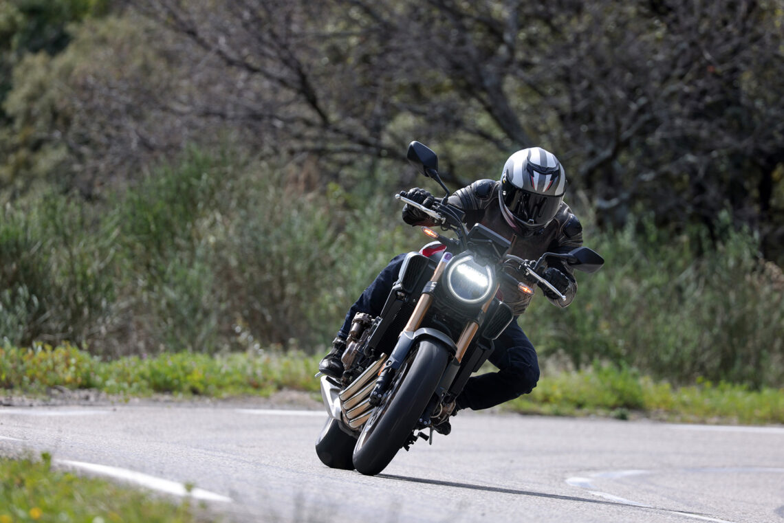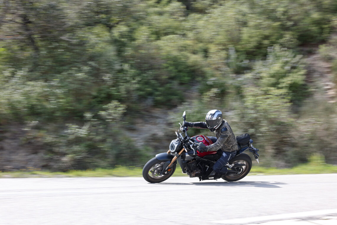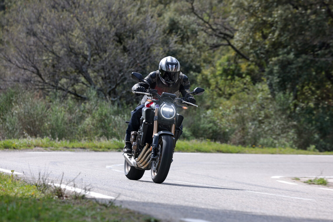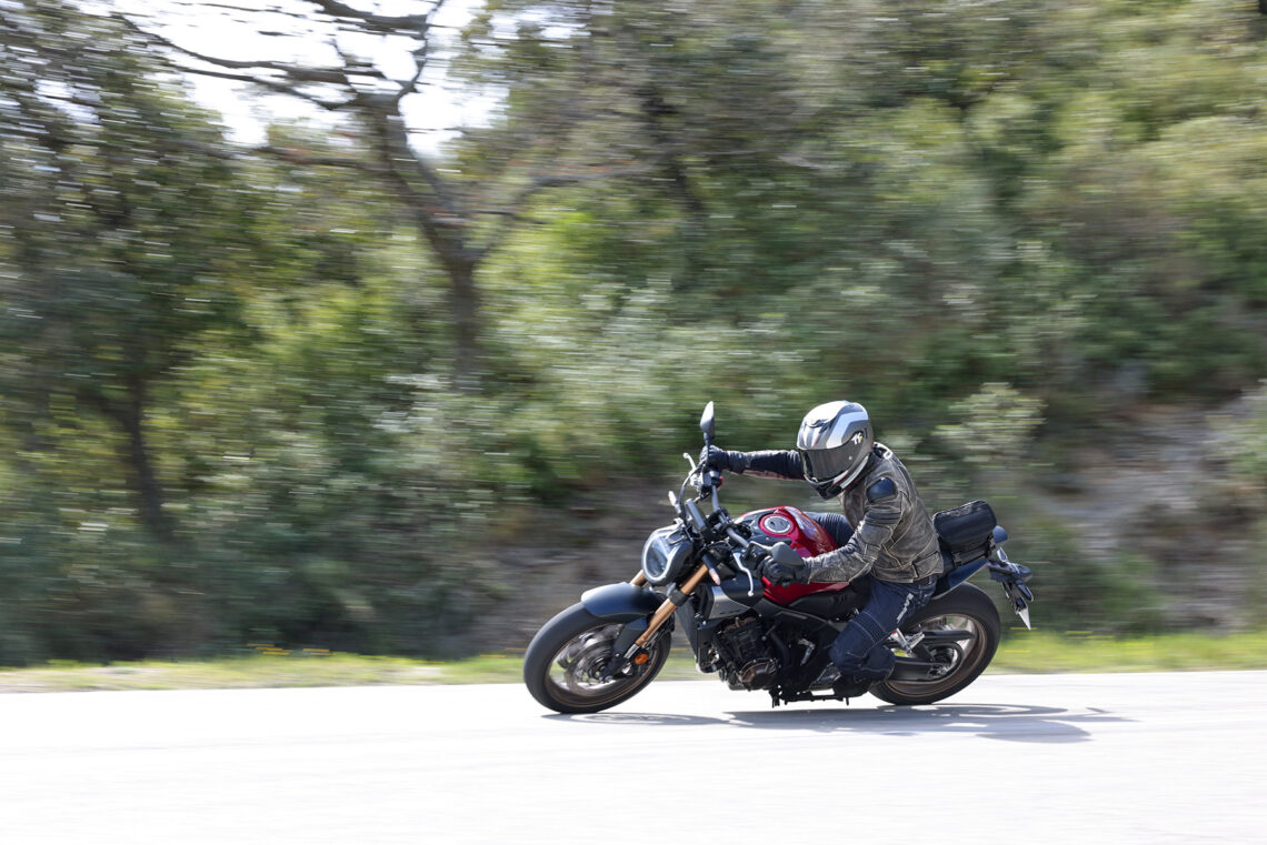 En términos generales la Honda CB650R sigue siendo muy vertiginosa a la hora de acometer curvas, muy noble y estable en el paso por curva, y algo más nerviosilla saliendo de ella si vamos muy animados.