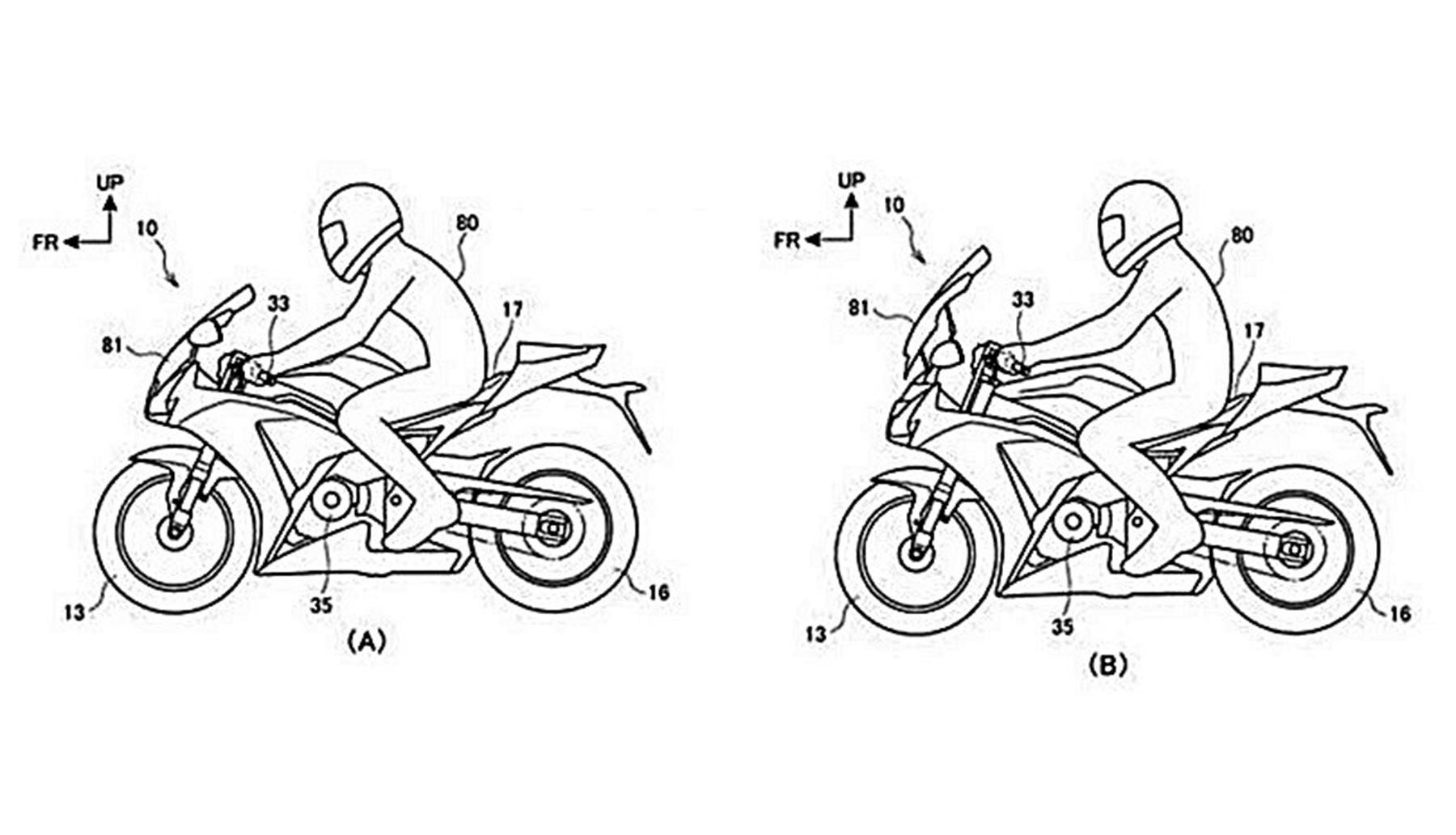 Tal y como se puede ver en los documentos publicados por nuestros compañeros de Morebike, el manillar se traslada por el interior de la horquilla. Por su parte, la pantalla simplemente pivota sobre un soporte hacia arriba y hacia fuera. ¿Será un sistema mecánico o electrónico? ¿Lo veremos pronto en la CBR? ¿Qué opinas de este sistema?