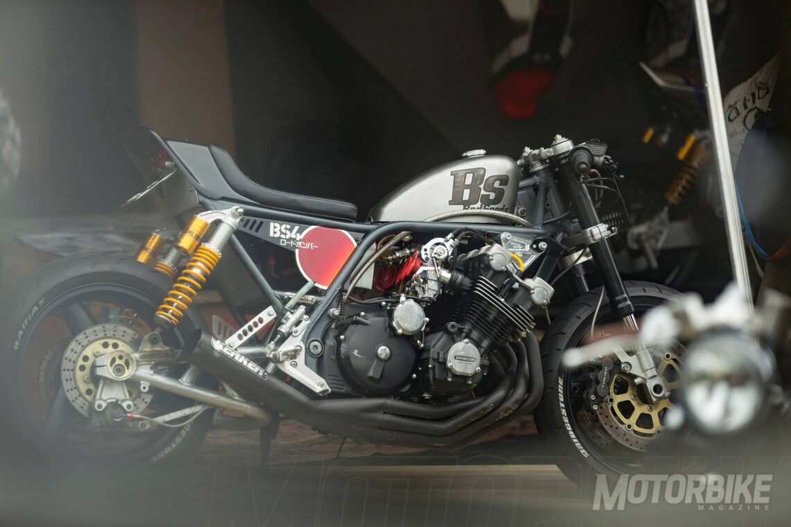 - Honda CBX1000: La espectacular seis cilindros de 1047 cc sirve de base para esta tercera personalización firmada por el concesionario parisino Boulmich Moto en colaboración con el motoclub Bad Seeds. La gran sport-tourer se convierte en una musculosa 'Road Bomber' con fuertes influencias dragster. El trabajo en el carenado es mínimo, y se han concentrado en reducir el peso por la 'necesidad de velocidad'. Otros detalles que destacar de la CBX están en el nuevo subchasis para ajustar el doble amortiguador trasero Öhlins, el nuevo escape 6-1, la placa porta-dorsal con LEDs hecha a mano y los neumáticos Bridgestone.
