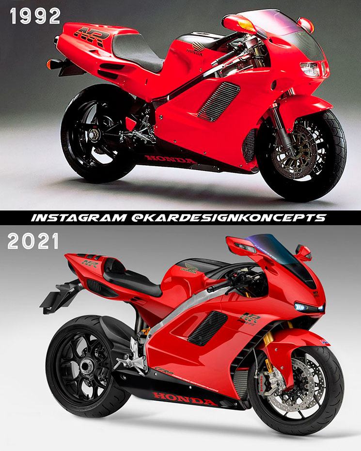 Sea como fuera, este montaje por ordenador simplemente refleja una posibilidad de la que, por ahora solo podremos soñar... y muchos de nosotros seguiremos soñando con ella aunque se diese el caso de que Honda volviese a fabricar la NR, ya que su precio sería carísimo.