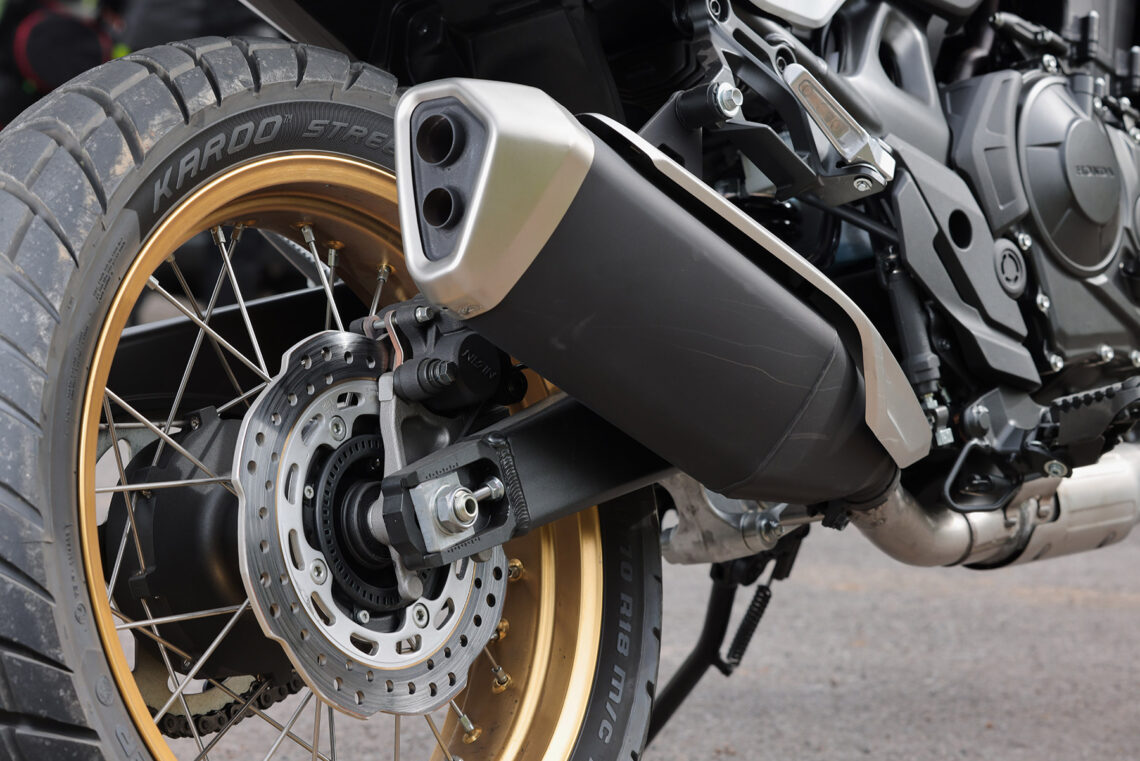 La Honda Transalp 2023 es una moto que se ha presentado en paralelo con la Hornet (otro conocido nombre que vuelve al mercado naked), una moto con la que comparte buena parte del desarrollo, sobre todo por el motor. Es aquí donde encontramos la principal disrupción respecto a los modelos anteriores, ya que, a pesar de seguir siendo un propulsor bicilíndrico, la disposición elegida pasa de ser de la clásica en 'V' a ser en línea. En esta ocasión, tiene una cilindrada de 755 cc rindiendo una potencia de 67,5 kW (90,51 cv) a 9500 rpm y un par de 75 Nm a 7250 rpm, dosificado por un acelerador electrónico, con embrague anti-rebote y una autonomía declarada de 390 km gracias a sus casi 17 litros de depósito. Además, es limitable para el carnet A2.