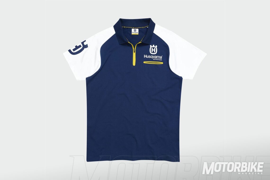 Replica Team Polo: Este es el polo oficial de los pilotos del equipo Husqvarna. Está confeccionado en tejido de alta resistencia y materiales de alta calidad, con un corte amplio y cómodo. Cuenta con un logo de Husqvarna en la pechera junto a un pequeño detalle en amarillo. Por detrás también cuenta con el logo de la marca en grande.