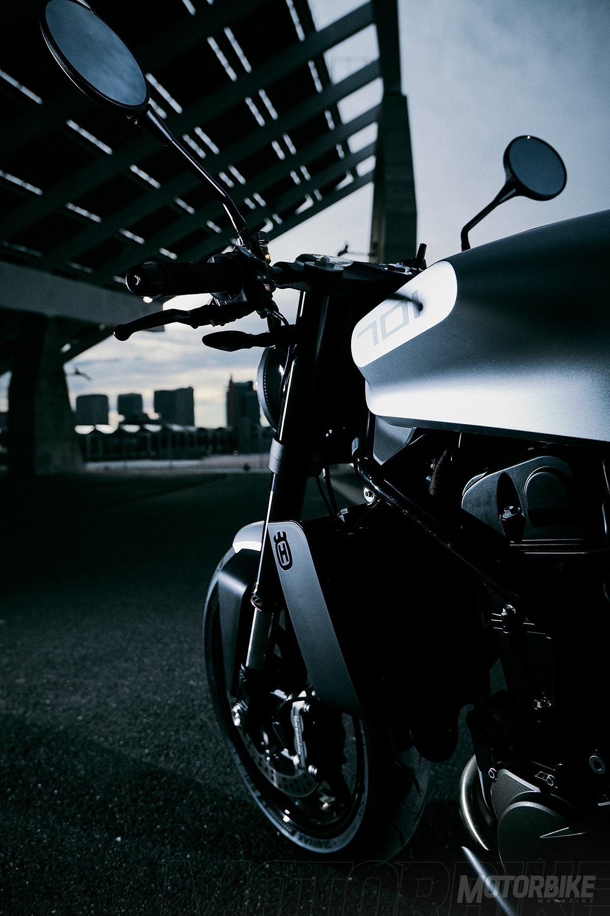 Entre sus principales diferencias estará el cambio del motor monocilíndrico de la 701 por el bicilíndrico de 799 cc que desarrolla más de 100 cv de potencia que ya monta su hermana.