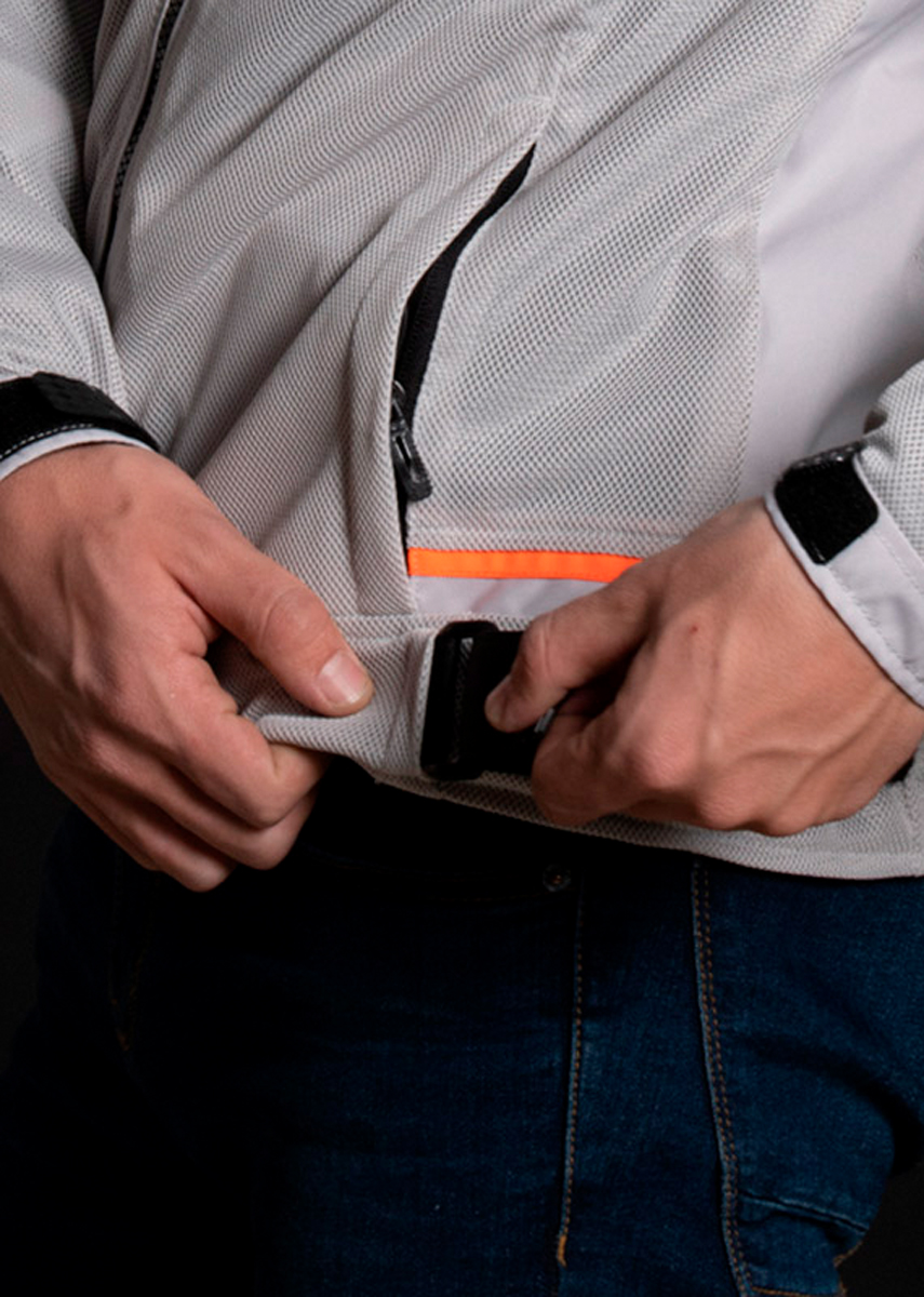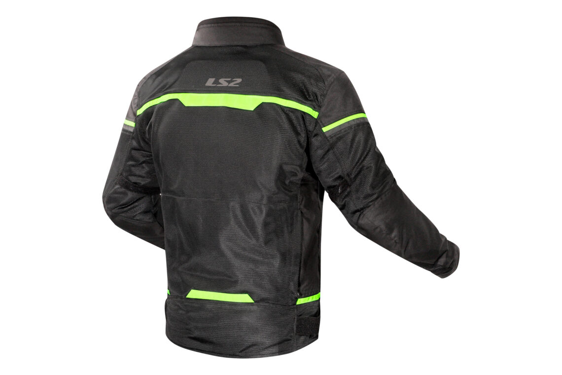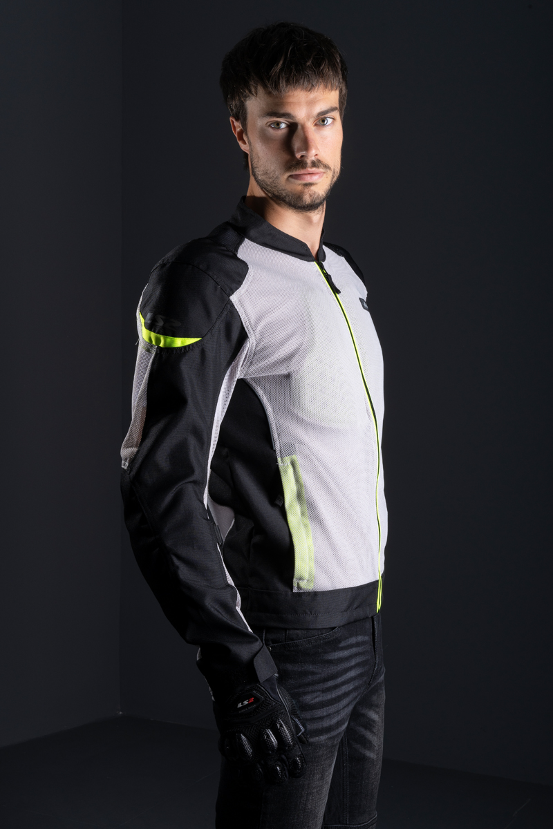 Es cierto que en verano suele llover muy pocos días, pero siempre cabe la posibilidad de ir en moto y que te caiga un chaparrón imprevisto. Para ello, LS2 ha pensado en la chaqueta Riva, que además de ser ligera y transpirable también es impermeable. Esta prenda tiene tres capas de poliéster 600 D 92T, con un forro interior que no deja pasar el agua, pero desmontable en caso de no necesitarla o para ponérselo por fuera. Al igual que sus hermanas para verano, dispone de ajustes en puños, brazos y cintura, pero esta prenda destaca por presentar protecciones en hombros y codos desmontables (EN1621-1: 2012 Nivel CE 1), siendo éstas últimas ajustables en dos posiciones. También puede completarse la protección con una espaldera LS2 851 Level 2 back opcional. Además de las bandas reflectantes y sus ajustes de velcro, también tiene una cremallera para juntarse con unos pantalones.