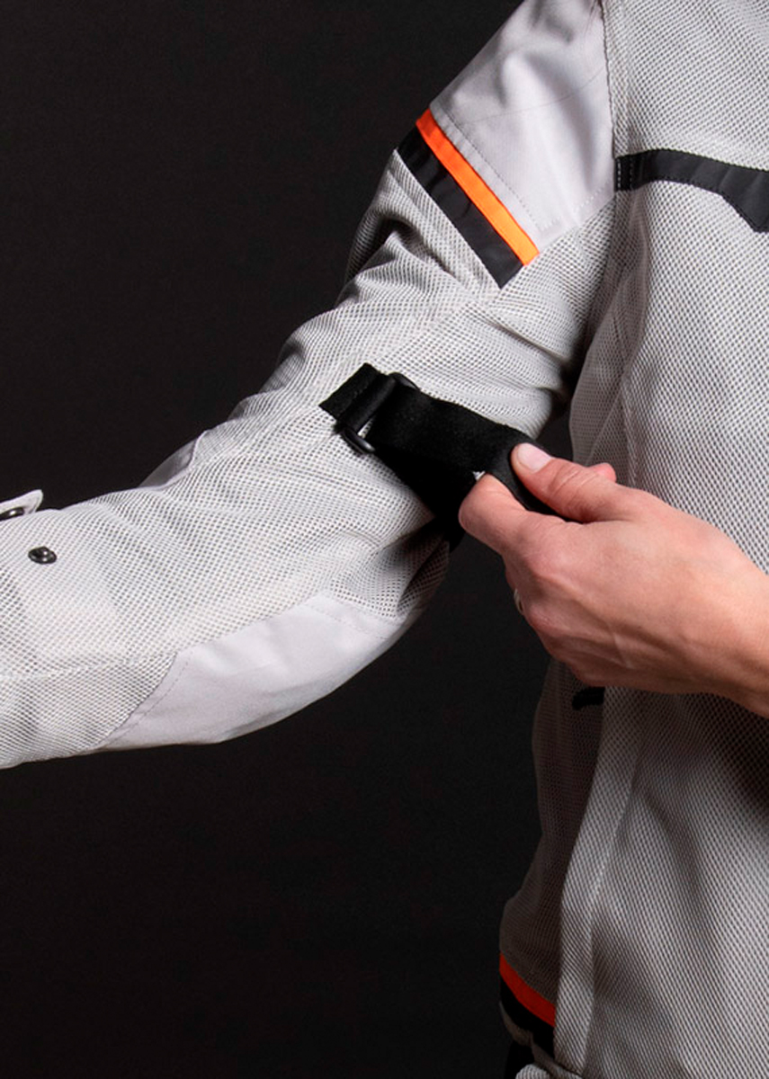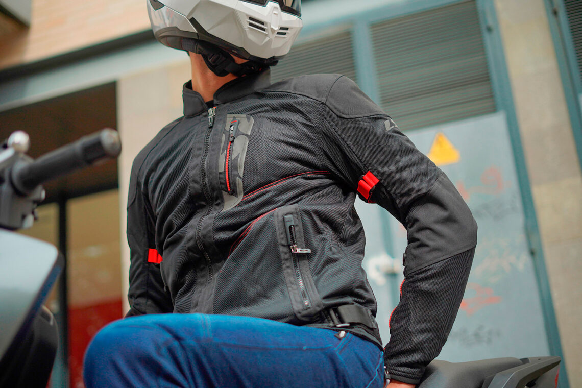 La chaqueta Airy, al igual que el resto de productos de esta lista, está pensada para el verano por sus tejidos transpirables. Un compuesto que da como resultado una prenda ultraligera con una excelente ventilación. Su capa exterior y forro son 100% de poliéster y sí, es ligera y deja pasar muy bien el aire, pero también es segura gracias a sus protecciones nivel CE 1 incluidas en hombros, pecho y codos, con la opción de añadir una espaldera nivel 2. Además, dispone de velcros para un mejor ajuste en puños, brazos y cintura, dos bolsillos y bandas reflectantes para ser mejor vistos.