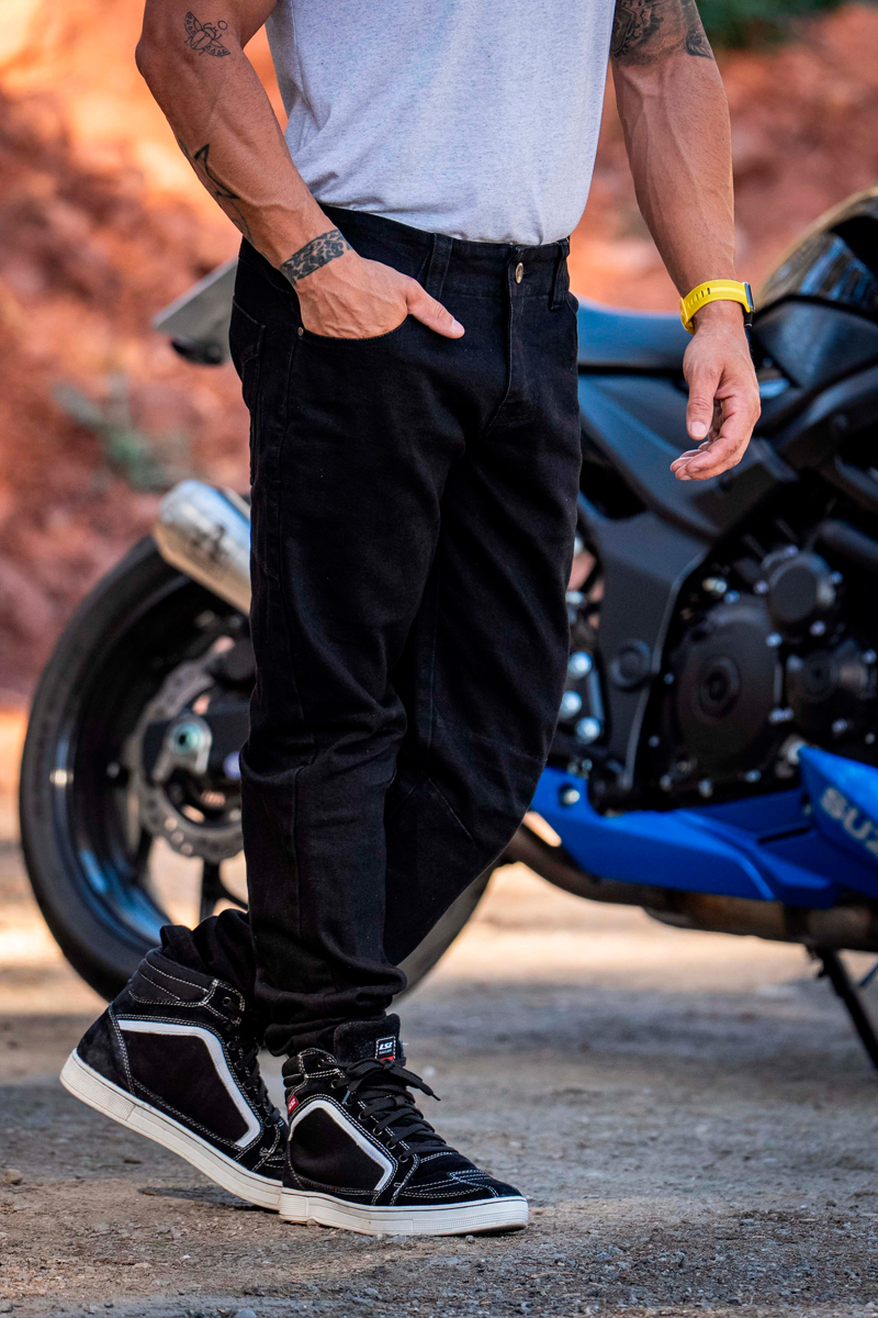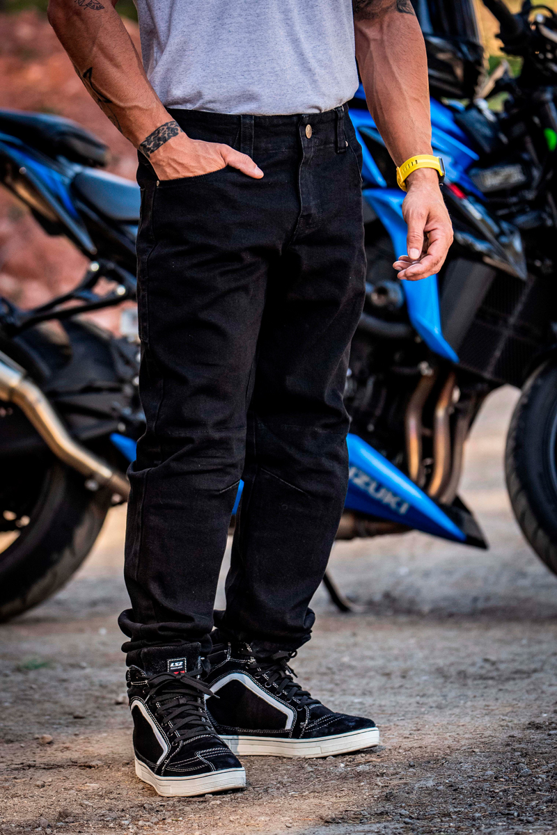 Con un diseño mucho más urbano, como si de un vaquero casual se tratase, LS2 tiene en su catálogo los pantalones Dakota, pero son mucho más que unos simples tejanos. Son de mezclilla elástico, altamente resistentes gracias a sus refuerzos de Kevlar. Dispone de fibras de aramida en forros de espalda y rodilla, con protecciones en ésta última zona y de tres posiciones. Tampoco va nada justo en cuanto a bolsillos, con dos laterales, dos traseros y uno en el muslo.