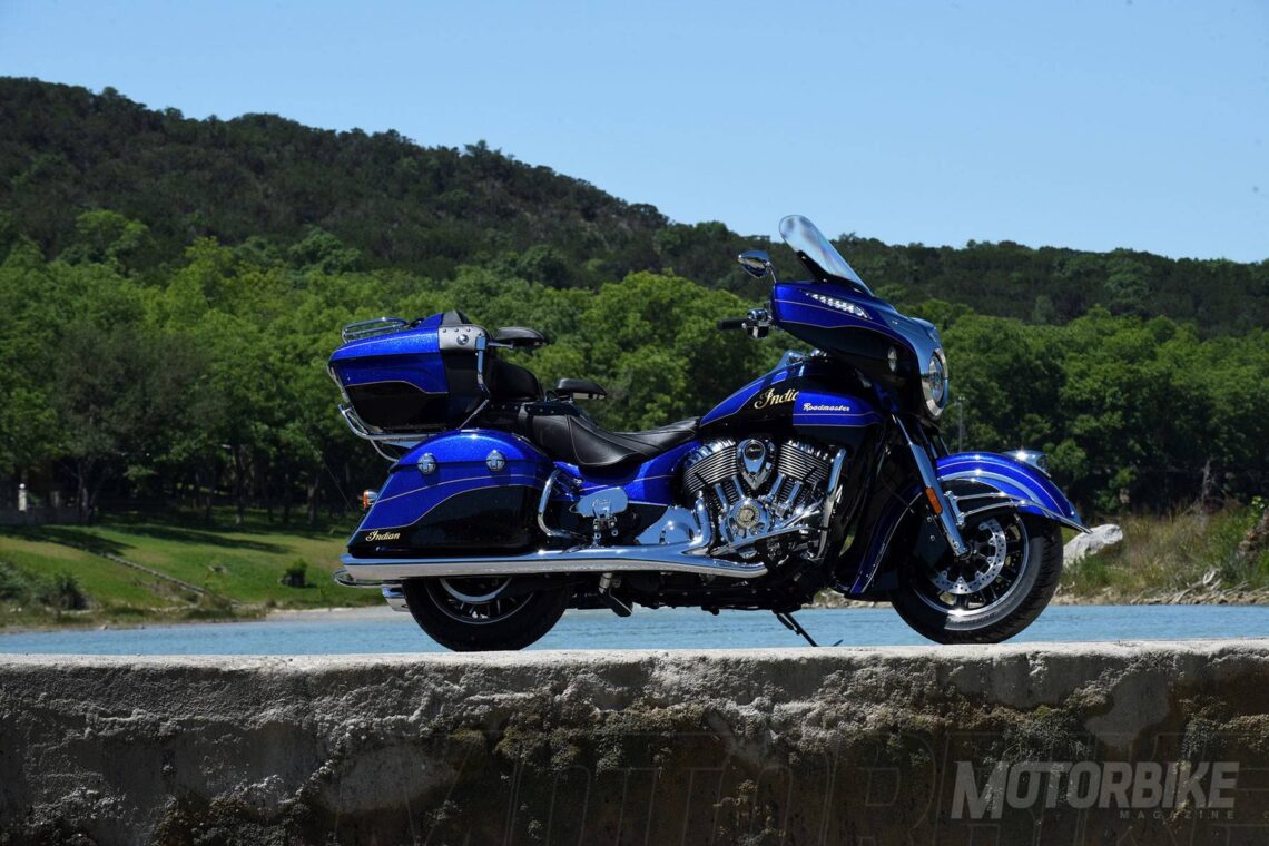 La Indian Roadmaster Elite es una de las novedades más importantes de la marca estadounidense en este 2018. Se trata de esta variante especial de su segmento más touring y premium. Llega en un diseño bitono espectacular pintado a mano (azul y negro), detalles dorados en oro real de 23 kilates en el depósito y más detalles cromados en parachoques delante y detrás. Además, su propietario disfrutará del sistema Ride Command y un sistema de audio premium de 300 W.