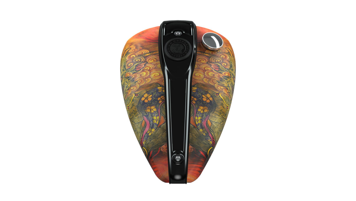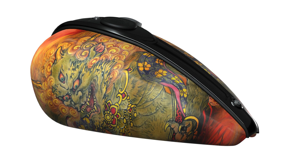 Shige muestra su ilusión por plasmar su trabajo en una Indian. De hecho, el propio artista trabajó como mecánico en sus inicios, justo a la vez que se vio atraído por el mundo del tatoo y fue perfeccionando su estilo.