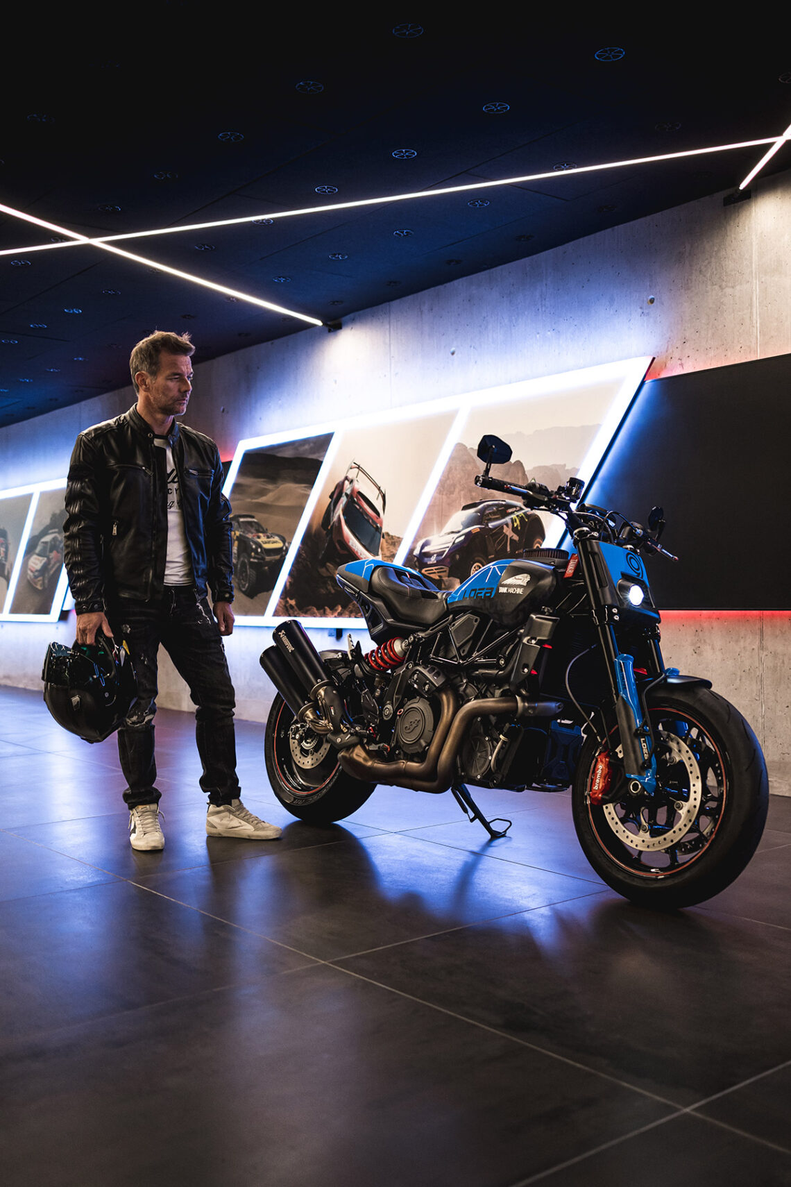 Para dar forma a la ‘FTR Loeb’ Sebastien Loeb y Tank Machine imaginaron una interpretación única del V-Twin americano que rinde homenaje a sus nueve campeonatos del mundial de Rally y a su pasión por las motos. Desde el Mundial de Rally al Mundial de Turismos, desde Pikes Peak al Rally Dakar, del Rallycross al Xtreme E y aún más, la excepcional carrera de Sébastien Loeb ha sido testigo de su legendario talento en una multitud de disciplinas, mientras batía récords a lo largo de su trayectoria. Pero lo que no tanta gente sabe es que Loeb descubrió su pasión por los deportes de motor en carreras locales de ciclomotores antes de probar suerte en el motociclismo en circuitos y en el enduro.