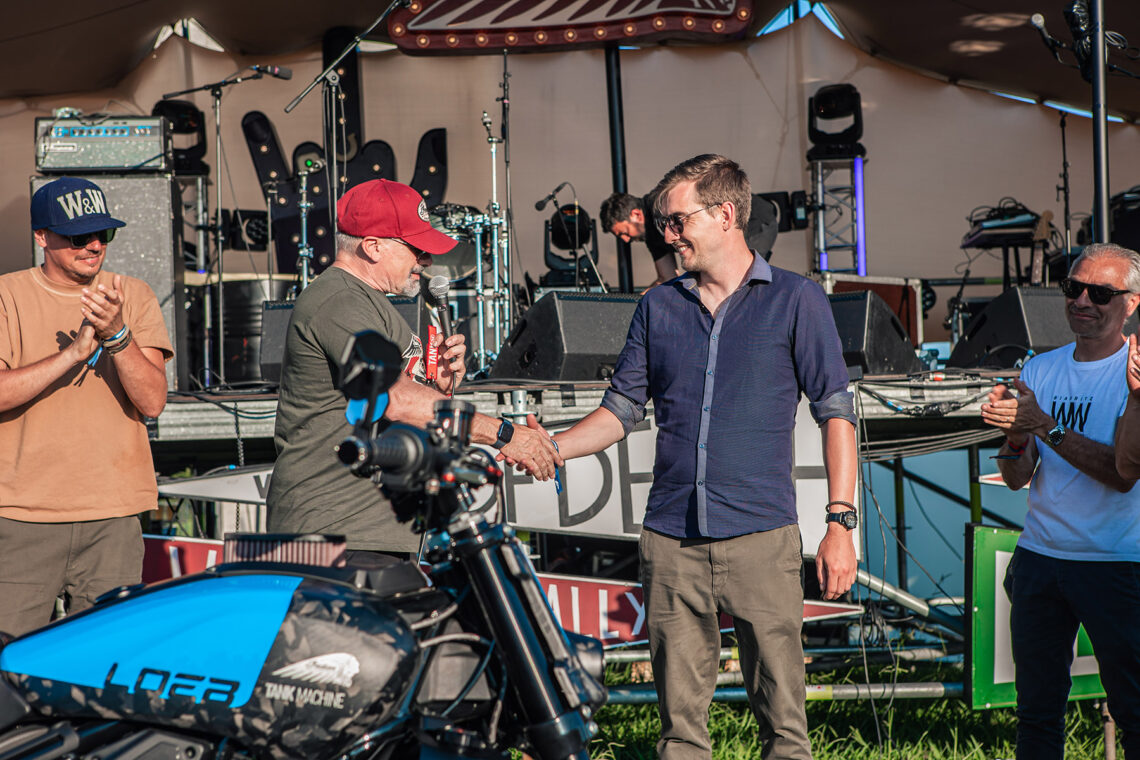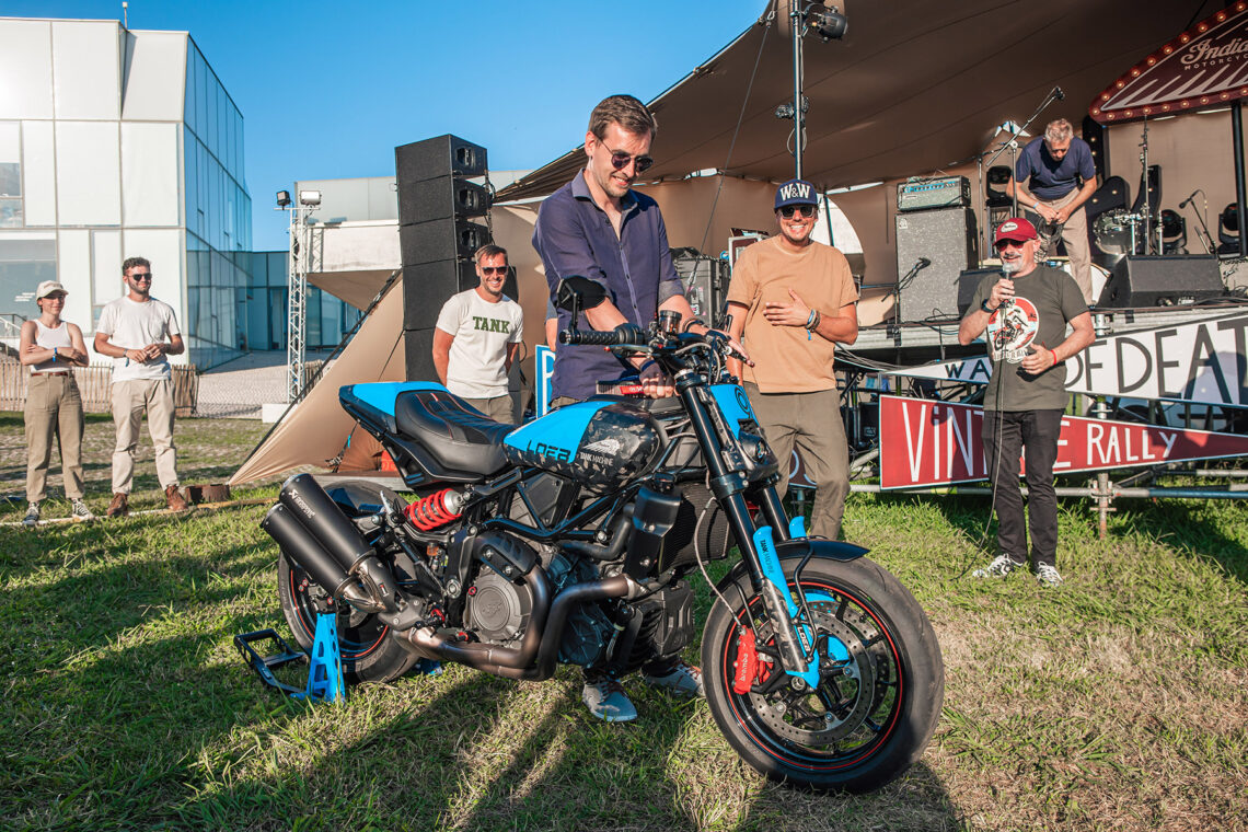 La firma norteamericana eligió el festival Wheels & Waves de Biarritz para hacer entrega de la moto a su ganador, que había podido viajar hasta allí disfrutando de un viaje VIP para ser presentado con su premio: una de las dos motos ideadas por Sébastien Loeb y fabricadas con meticulosa atención al detalle por el talentoso equipo de Tank Machine.