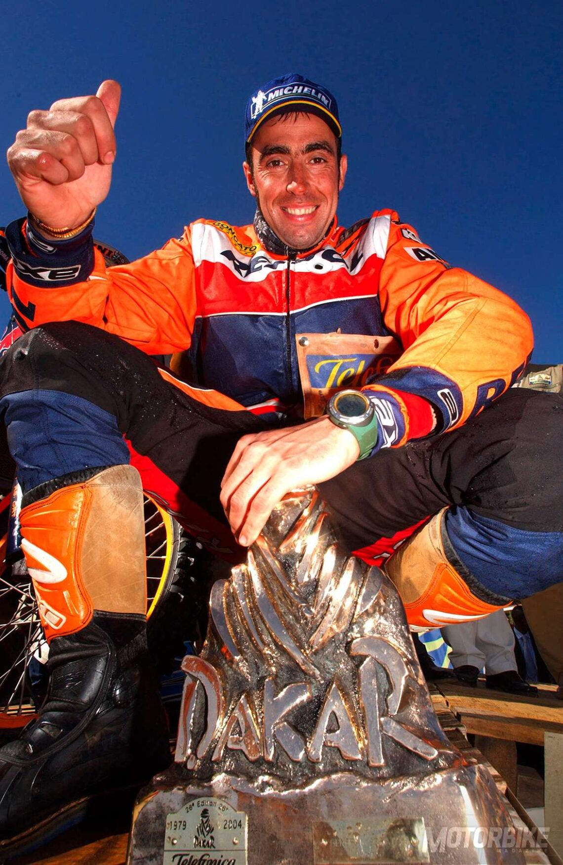 18 de enero de 2004. A orillas del Lago Rosa, Joan “Nani” Roma saborea sobre su KTM un triunfo con tintes épicos. Había estado persiguiéndolo durante bastantes años, acariciándolo tantas veces que cuando agarró el Touareg no quería soltarlo. Había ganado el Dakar y, de paso, se había convertido también en el primer piloto español de la historia que conseguía algo así. Se quitó una losa y coronó un camino repleto de inmensas esperanzas que hasta ese día habían acabado tornándose en tragos amargos. A la novena fue la vencida, y eso que sólo había podido terminar dos. El Dakar le debía una y saldó su deuda con el piloto de Vic, que dejó su firma en el palmarés antes de pasarse a las cuatro ruedas, donde reinaría también diez años más tarde.