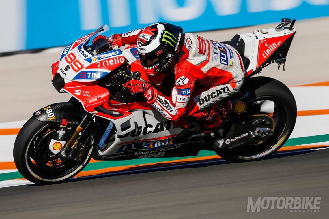 Ducati y Jorge Lorenzo empiezan a exhibir músculo en Valencia. En una de sus pistas más favorables, el balear ha dominado en la segunda sesión de libres por delante de Pedrosa y Dovizioso. Marc Márquez ha vuelto a irse al suelo; es su 26ª caída de 2017.