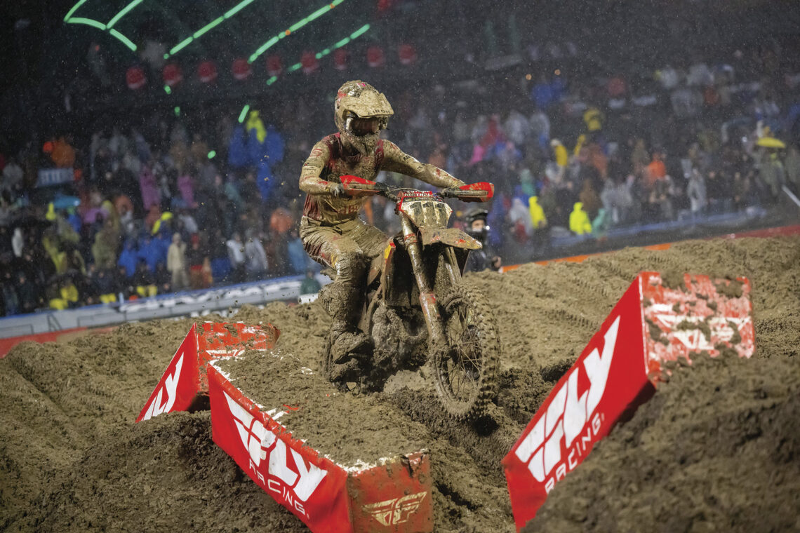 Tras un ilusionante (y difícil) debut en Anaheim, Prado llegó a su segunda cita en el Supercross con muchas lecciones aprendidas y aún mucho margen de mejora en la disciplina. San Francisco acogía la segunda cita de la temporada, en la que la lluvia acabó jugando un papel determinante. El trazado del Oracle Park de San Francisco se convirtió en un auténtico barrizal y eso provocó que se eliminasen los entrenamientos libres y que se redujesen los tiempos tanto de la manga clasificatoria como de la carrera principal. A priori, esa circunstancia era una mala noticia para Prado en plena adaptación al campeonato, pero el gallego le dio por completo la vuelta a la situación.